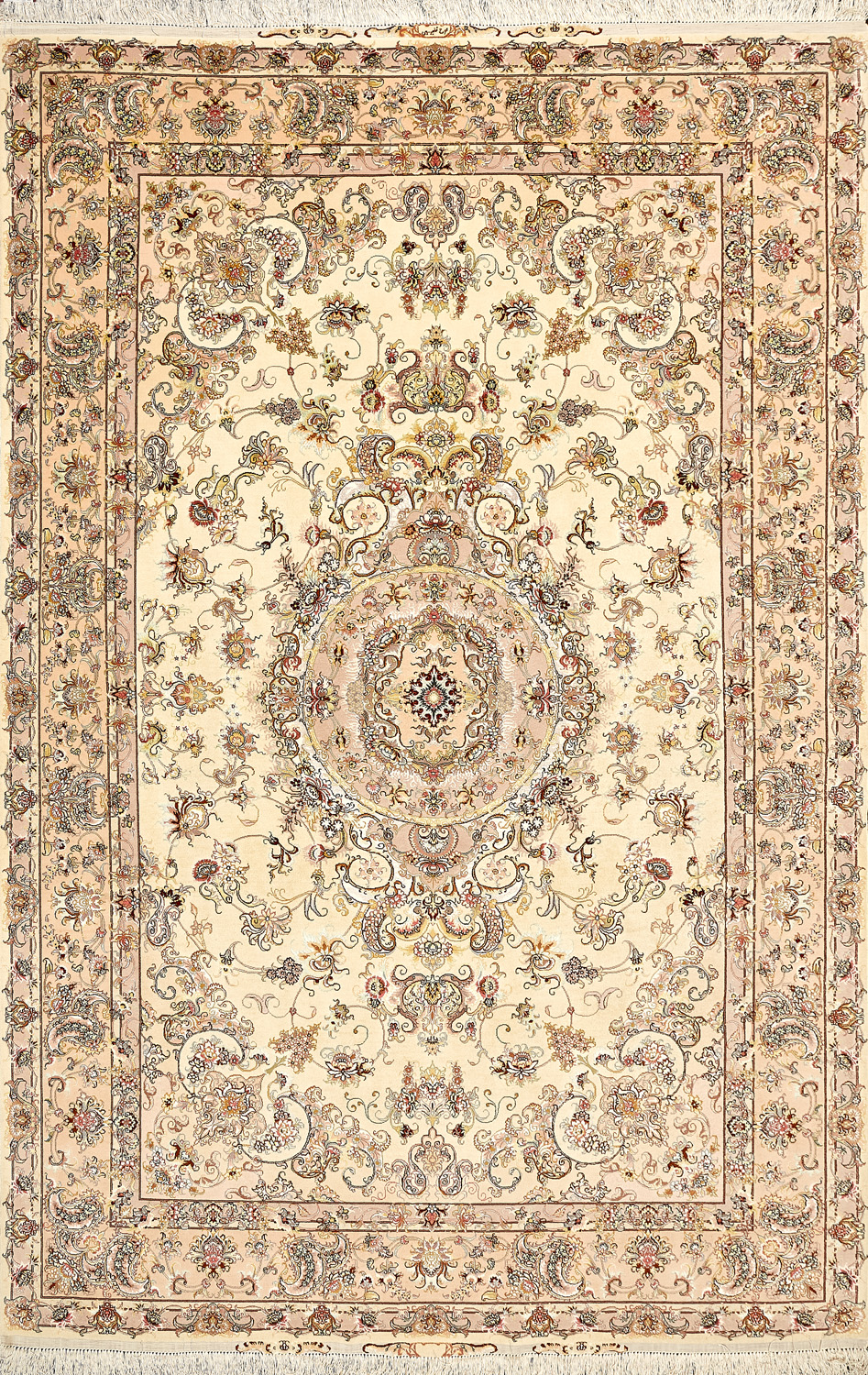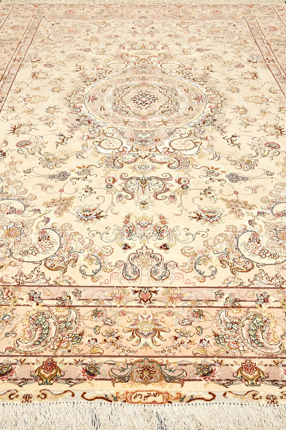 Рассыпанные по всему полю цветы, медальоны и «рыбная чешуя» — основные мотивы в дизайне ковров из коллекции Тебриз, а светлые тона и спокойные пастельные оттенки — основная цветовая палитра.