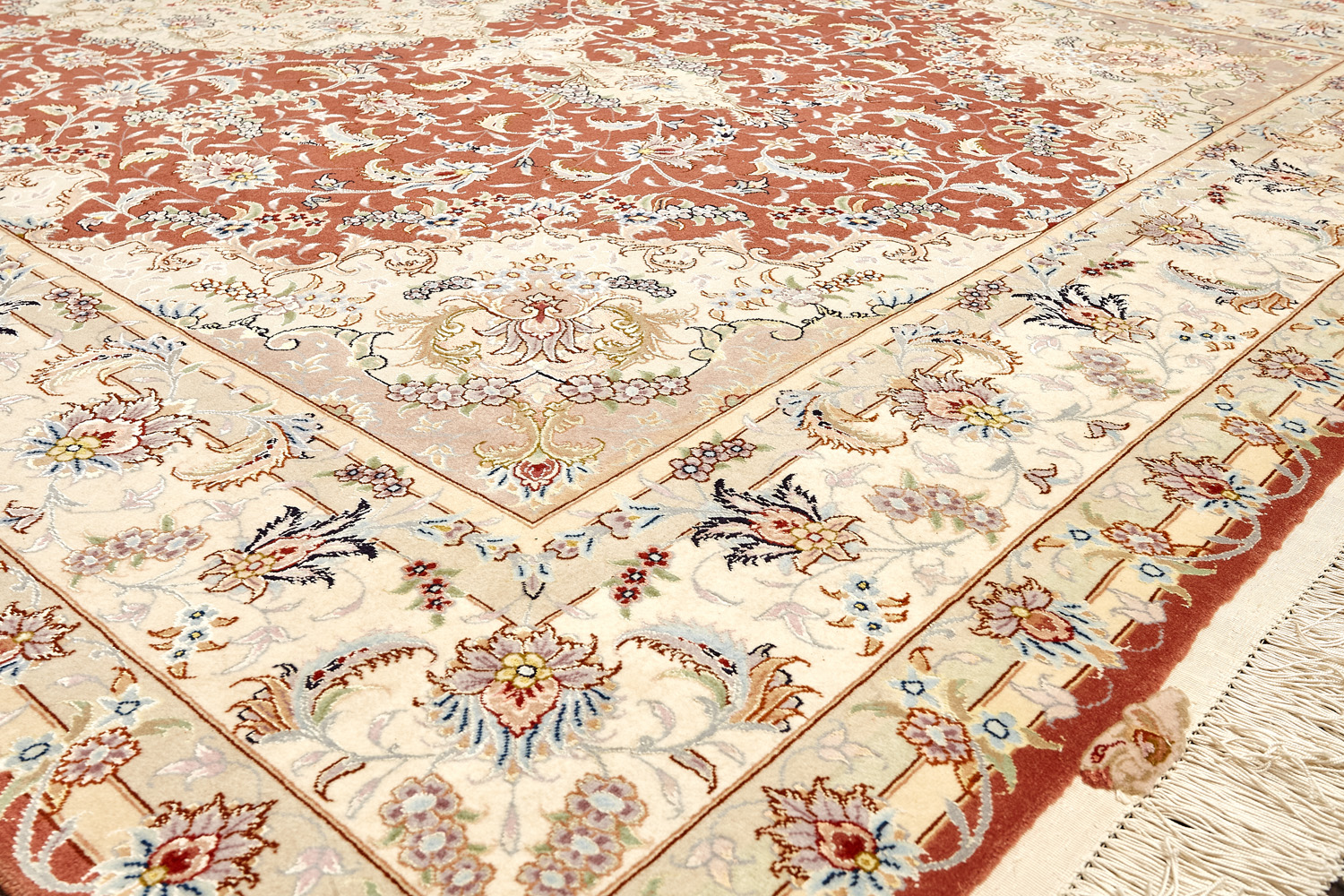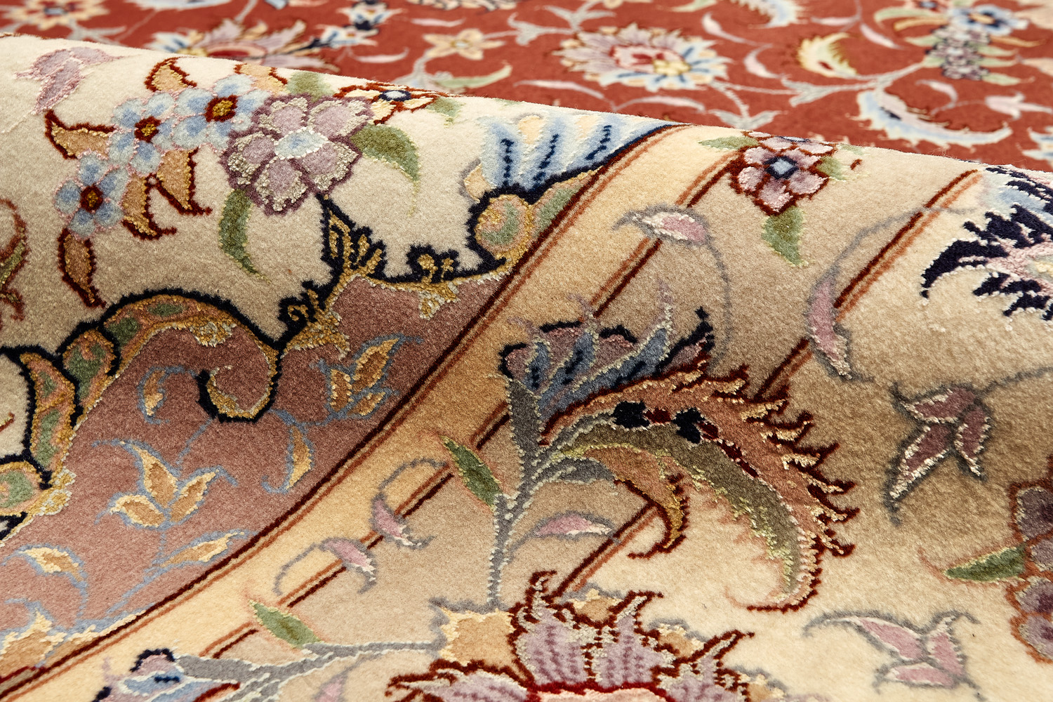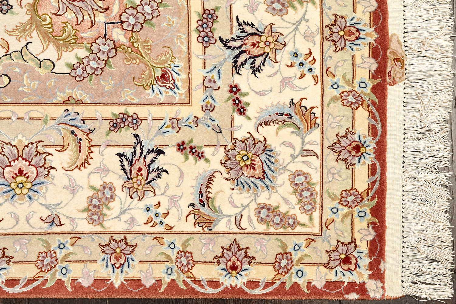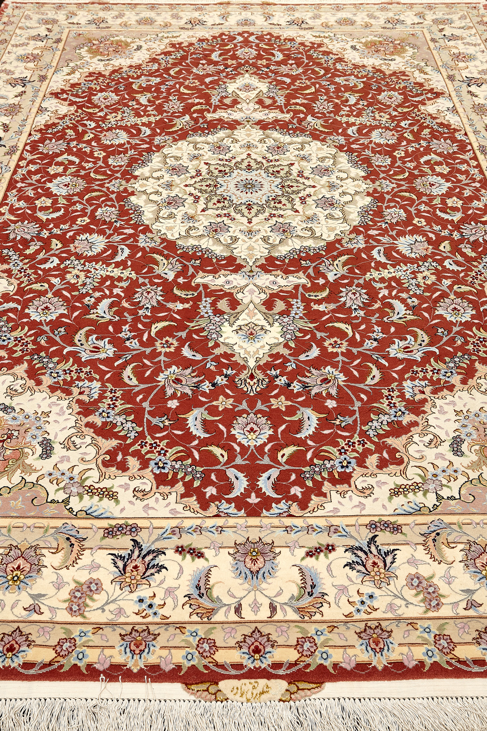 Ковры ткутся из шерсти и шёлка лучшими мастерами Ирана несколько лет, ведь обладают высочайшей плотностью для подобного состава ворса в 600 тысяч узлов на квадратный метр.