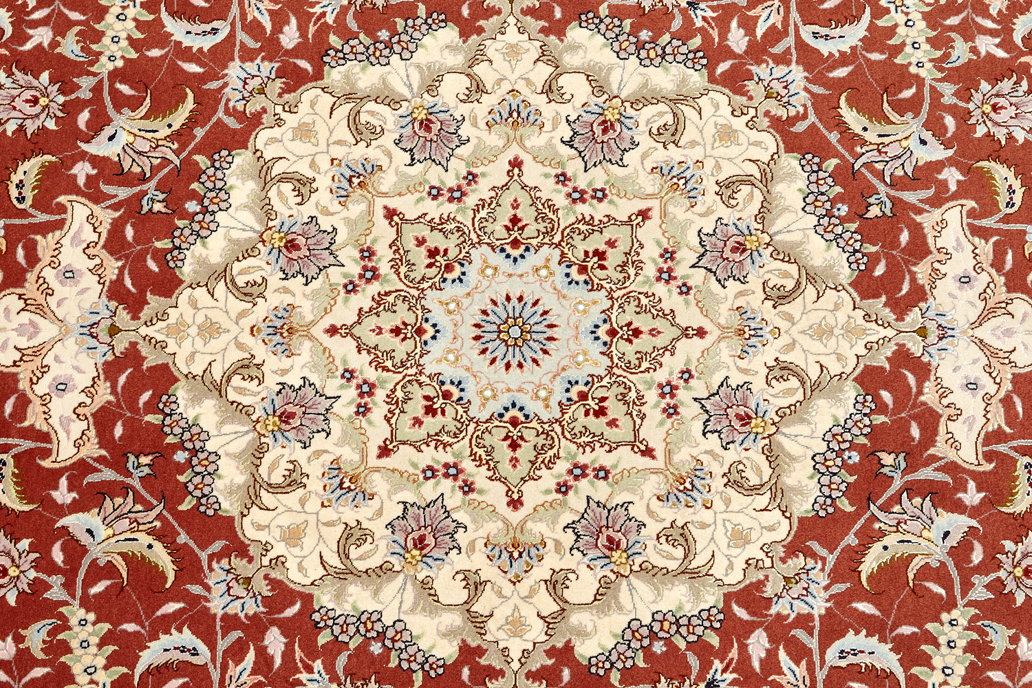 Рассыпанные по всему полю цветы, медальоны и «рыбная чешуя» — основные мотивы в дизайне ковров из коллекции Тебриз, а светлые тона и спокойные пастельные оттенки — основная цветовая палитра.