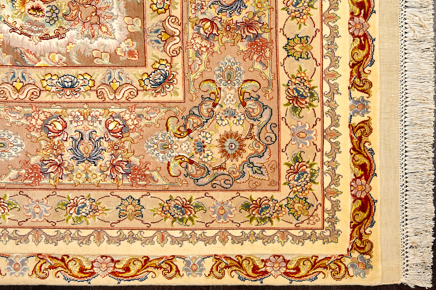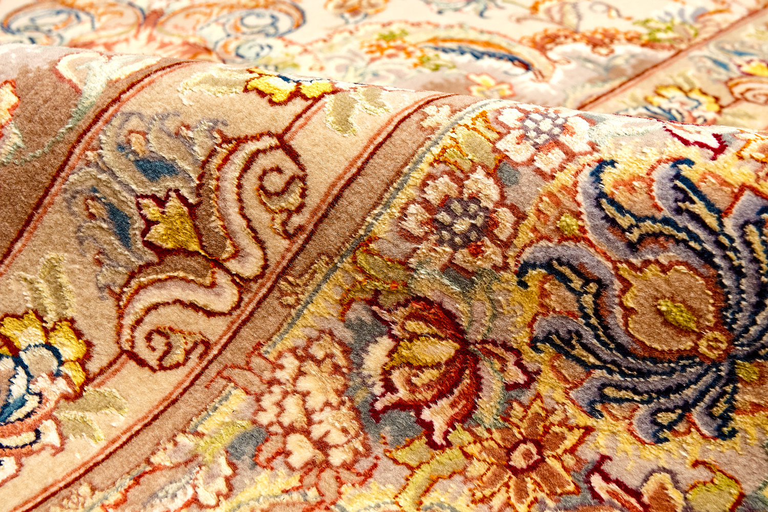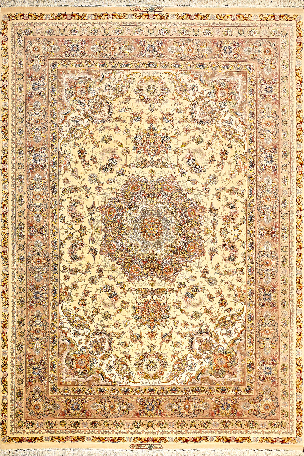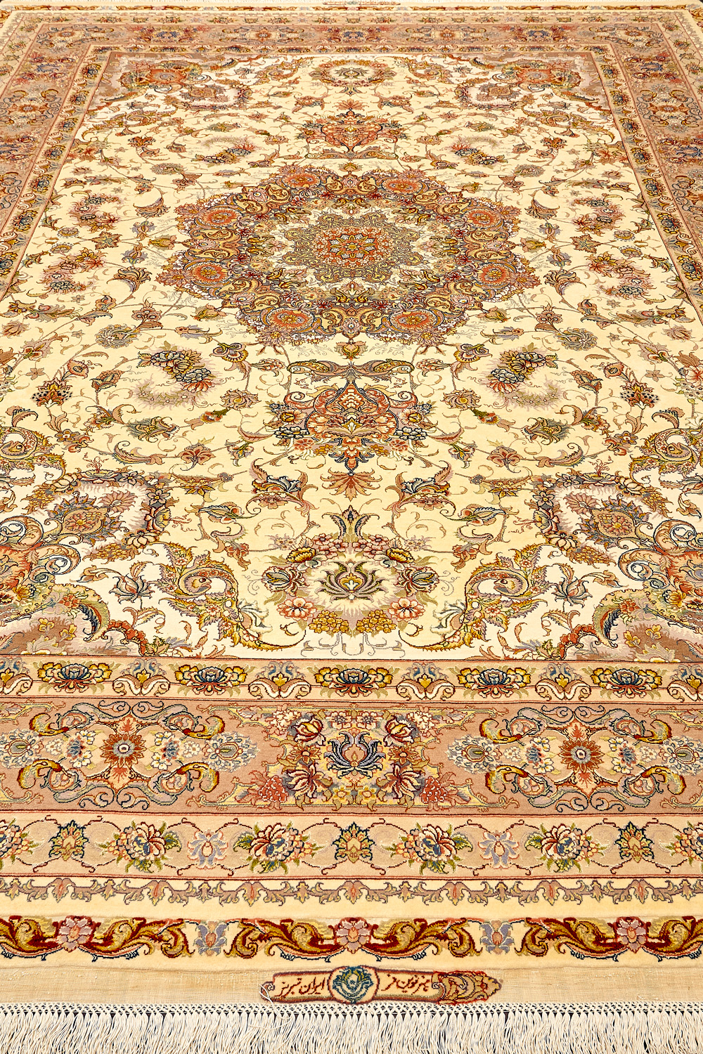 Ковры ткутся из шерсти и шёлка лучшими мастерами Ирана несколько лет, ведь обладают высочайшей плотностью для подобного состава ворса в 600 тысяч узлов на квадратный метр.