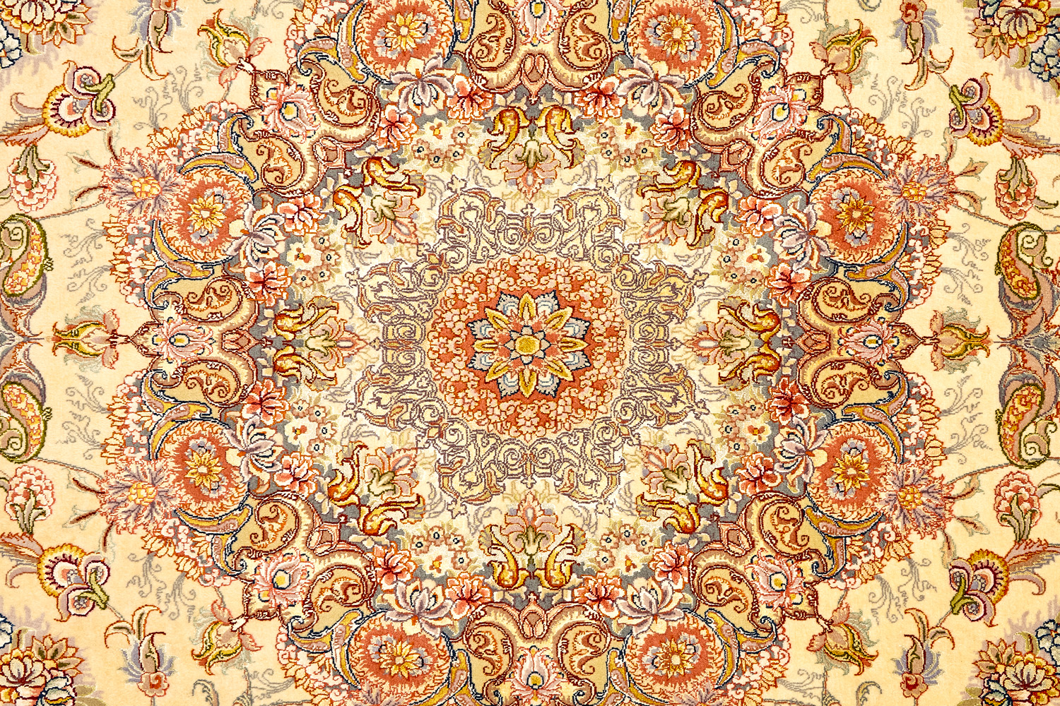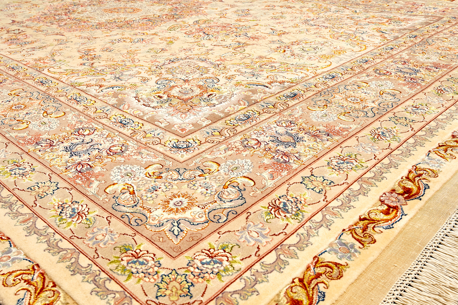 Рассыпанные по всему полю цветы, медальоны и «рыбная чешуя» — основные мотивы в дизайне ковров из коллекции Тебриз, а светлые тона и спокойные пастельные оттенки — основная цветовая палитра.