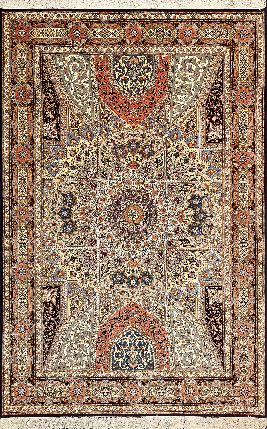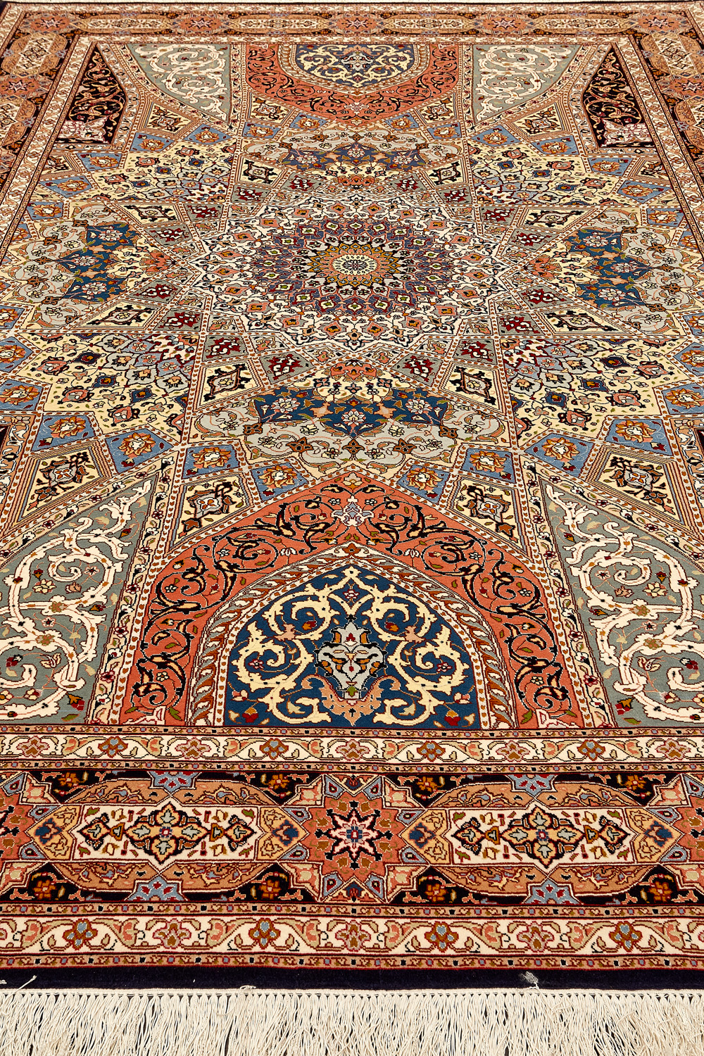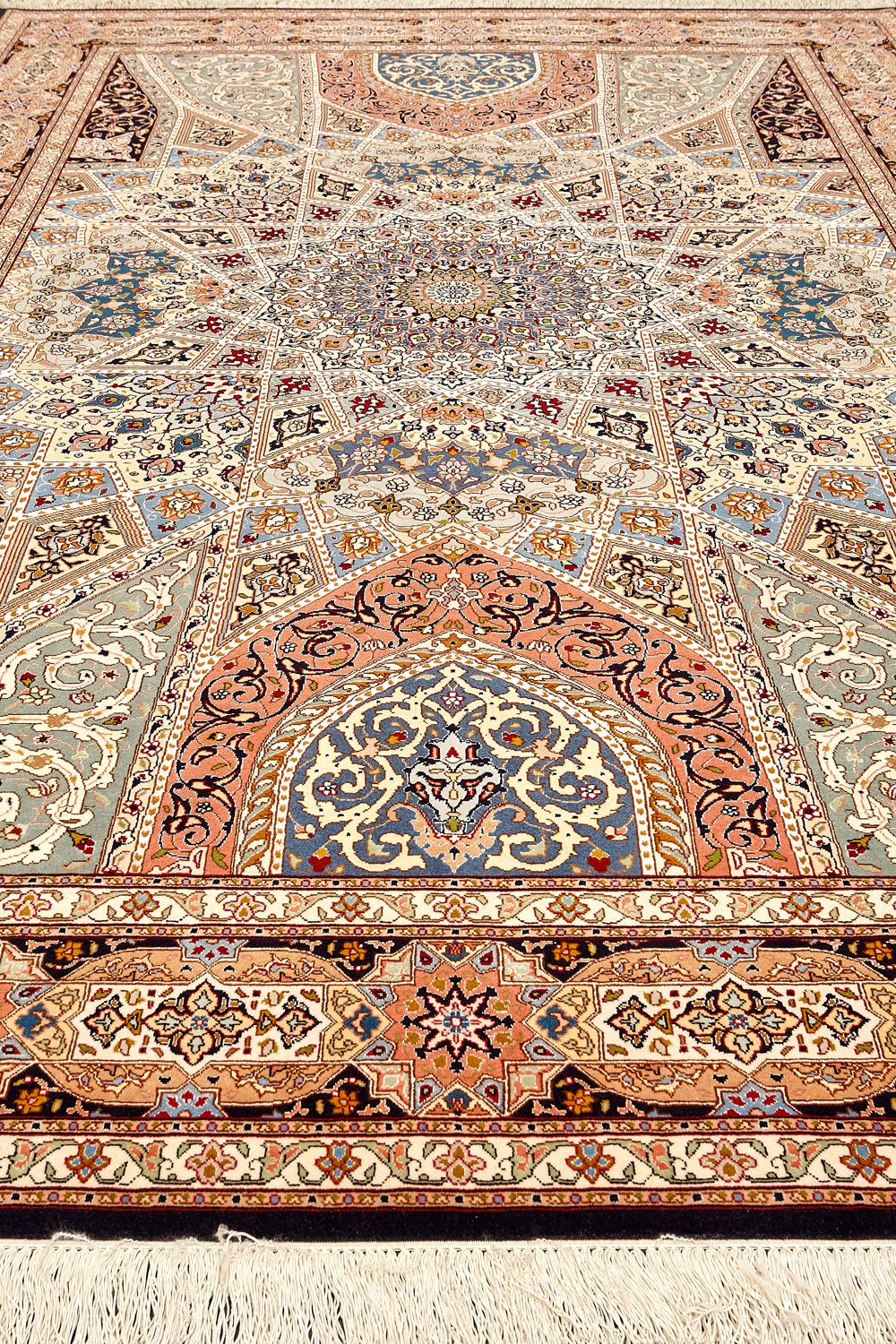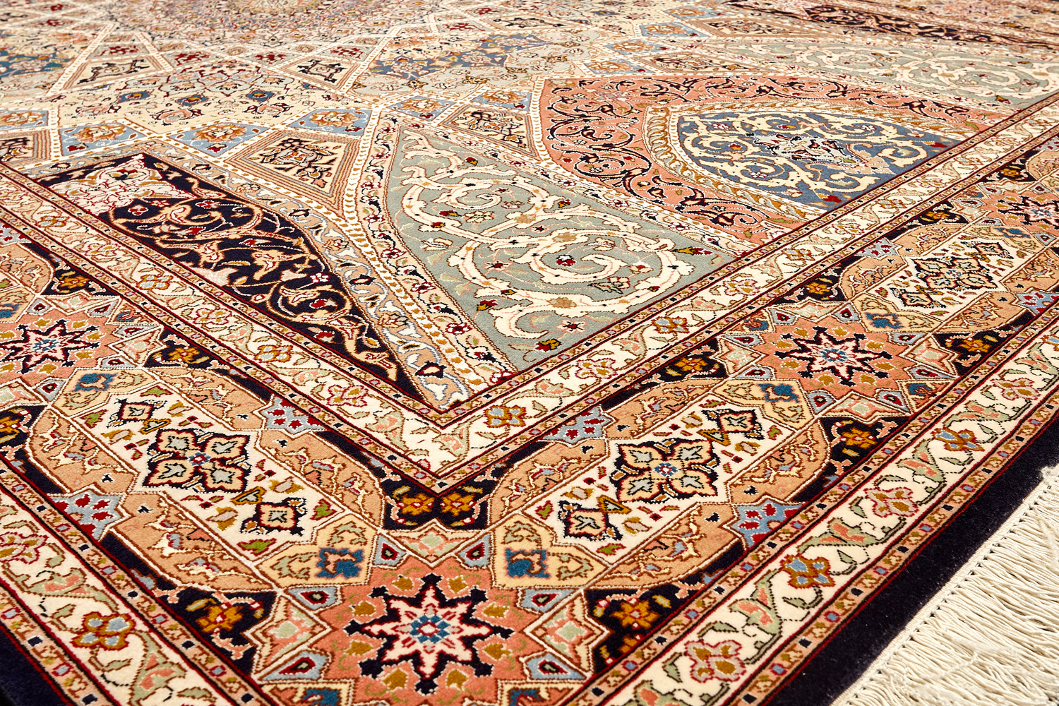Ковры ткутся из шерсти и шёлка лучшими мастерами Ирана несколько лет, ведь обладают высочайшей плотностью для подобного состава ворса в 600 тысяч узлов на квадратный метр.
