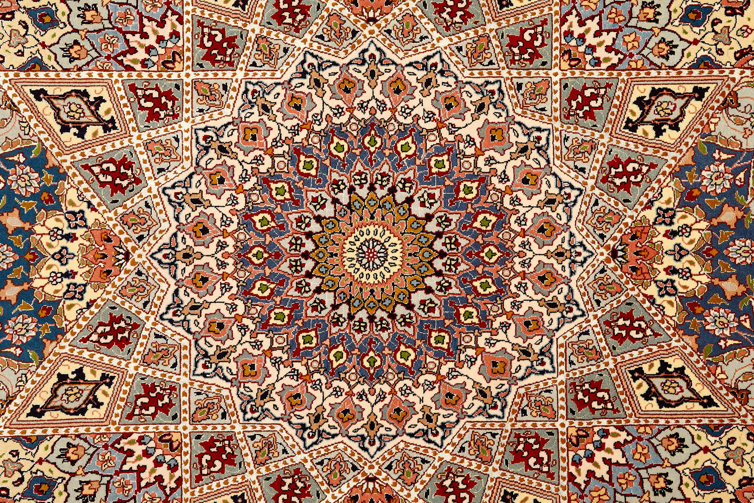 Рассыпанные по всему полю цветы, медальоны и «рыбная чешуя» — основные мотивы в дизайне ковров из коллекции Тебриз, а светлые тона и спокойные пастельные оттенки — основная цветовая палитра.