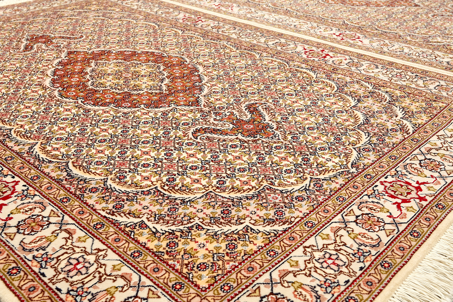 Ковры ткутся из шерсти и шёлка лучшими мастерами Ирана несколько лет, ведь обладают высочайшей плотностью для подобного состава ворса в 600 тысяч узлов на квадратный метр.