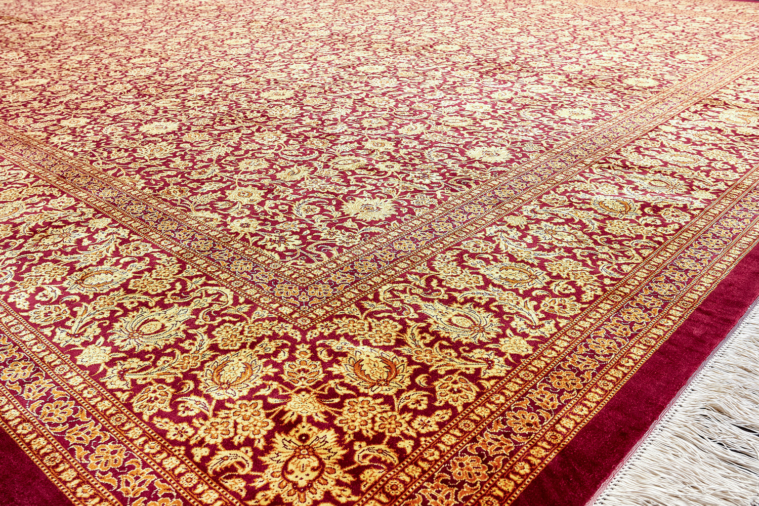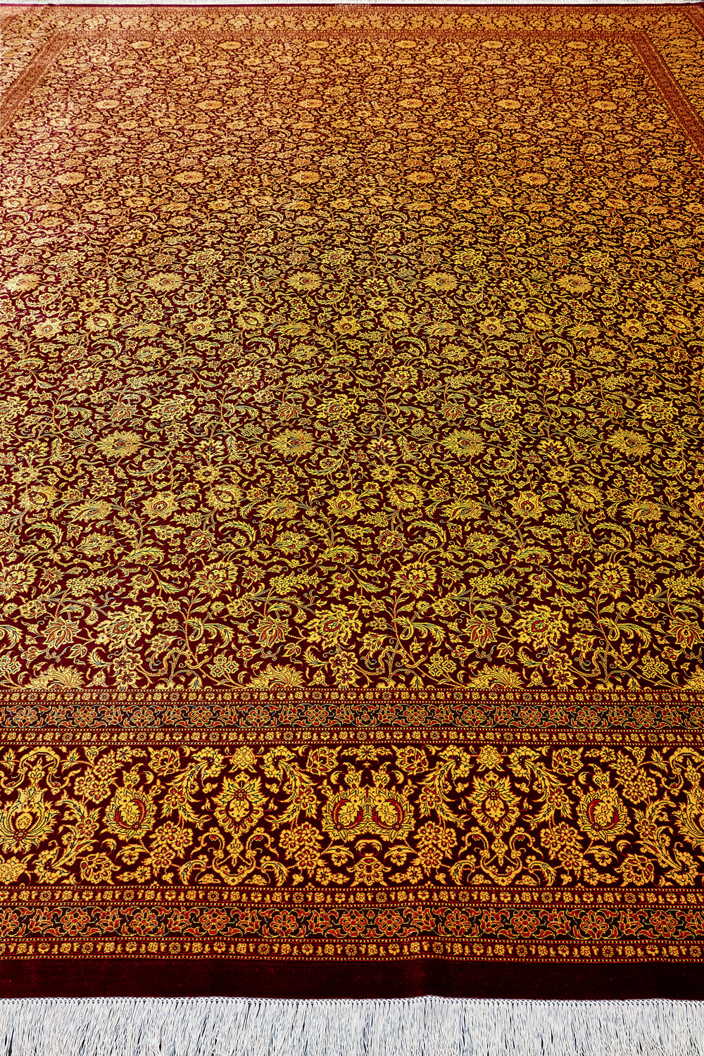 Шёлковая нить гибкая и прочная, поэтому ковры из этого материала считаются самыми износостойкими, а по количеству цветов в одном узоре ковры из коллекции Кум, пожалуй, остаются непревзойдёнными.