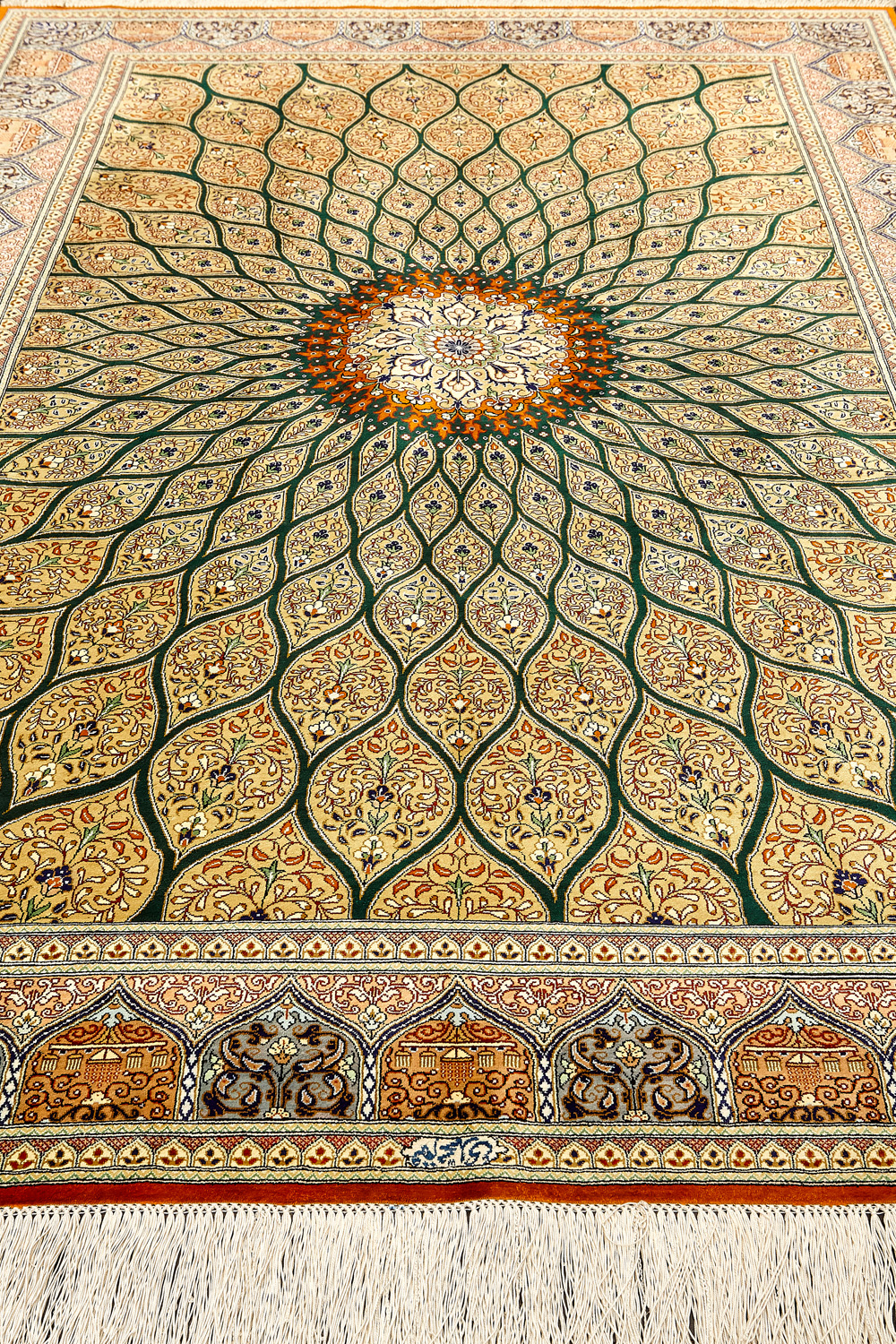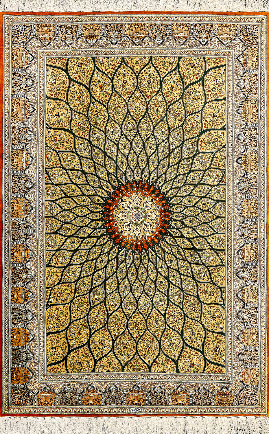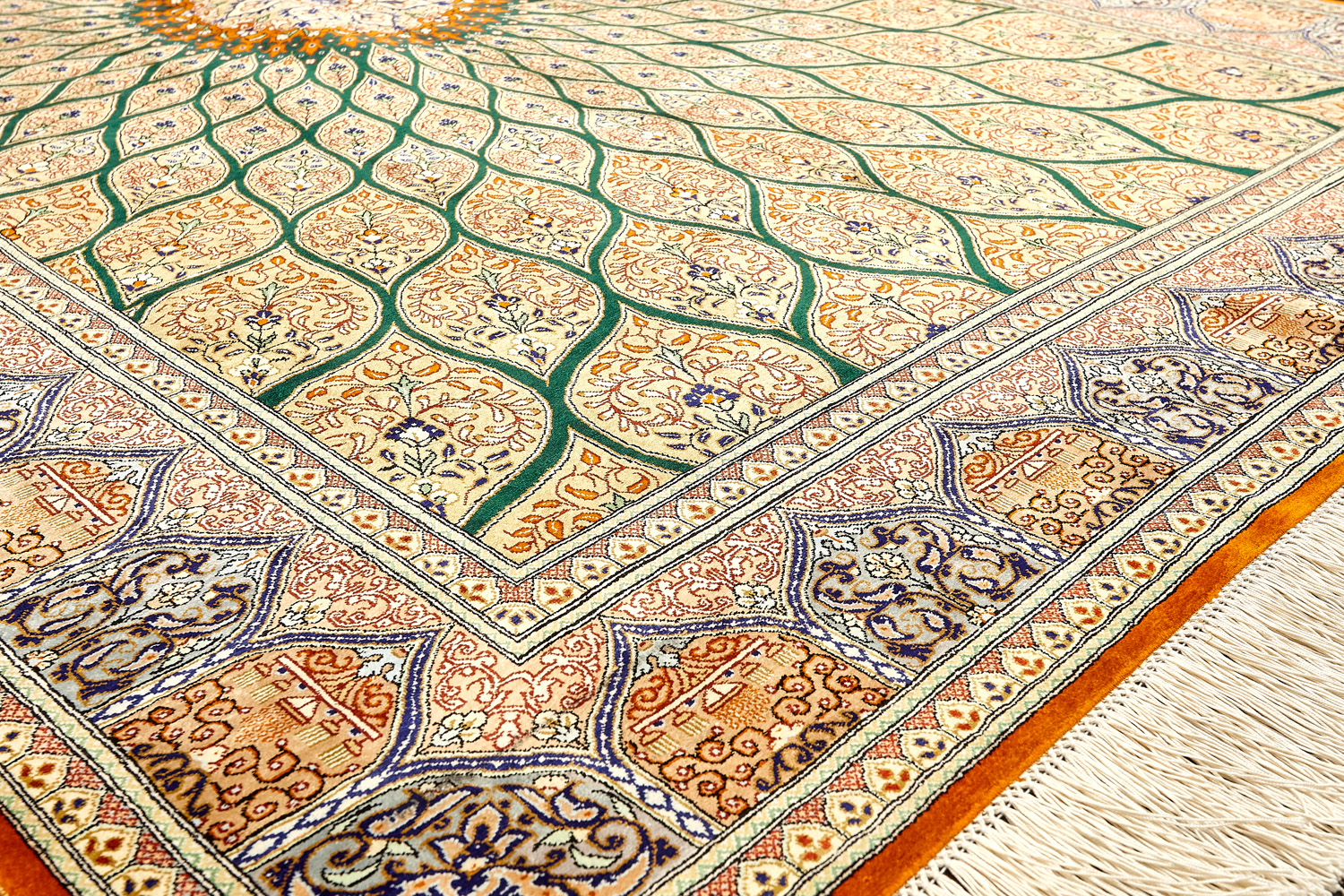 Шёлковая нить гибкая и прочная, поэтому ковры из этого материала считаются самыми износостойкими, а по количеству цветов в одном узоре ковры из коллекции Кум, пожалуй, остаются непревзойдёнными.