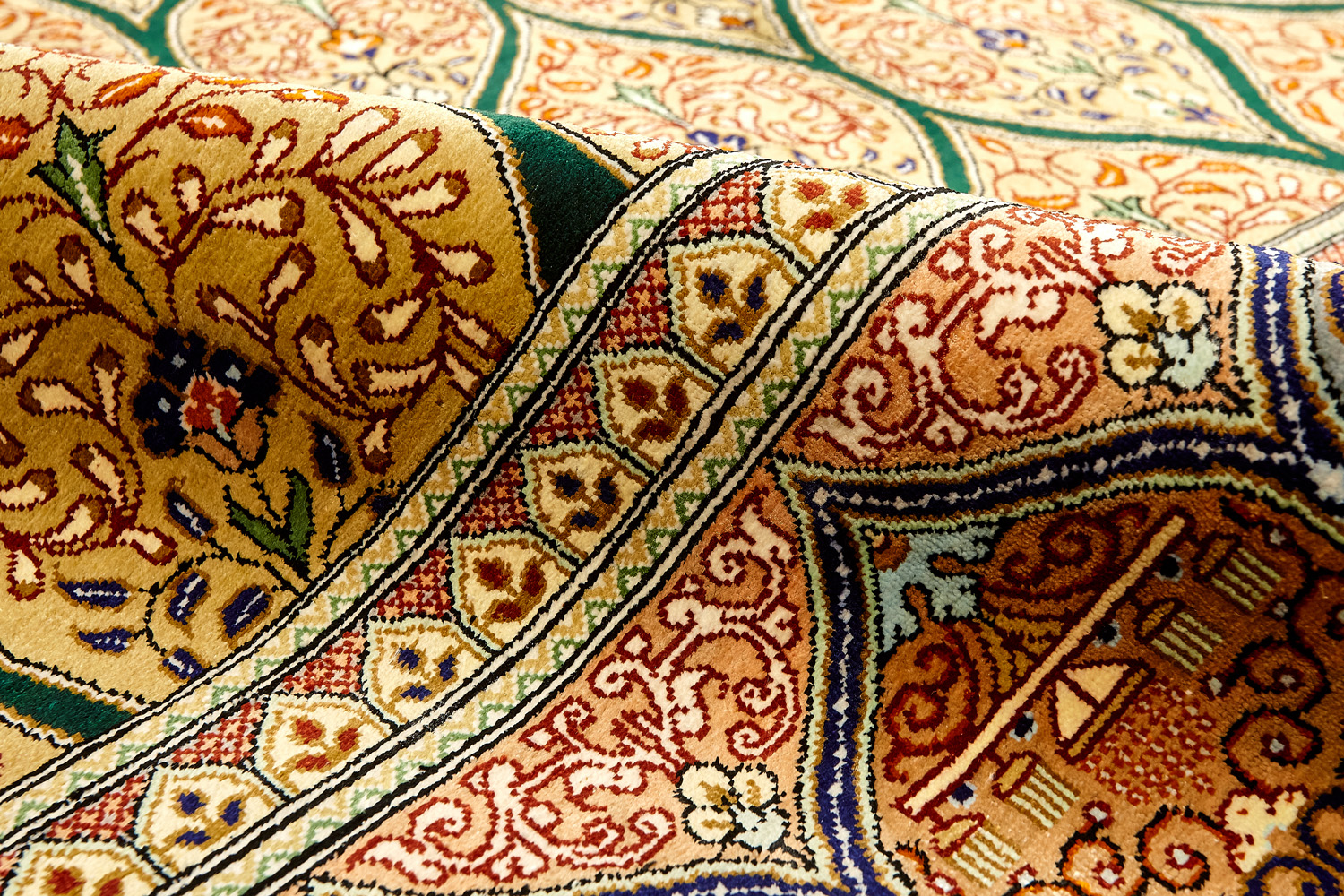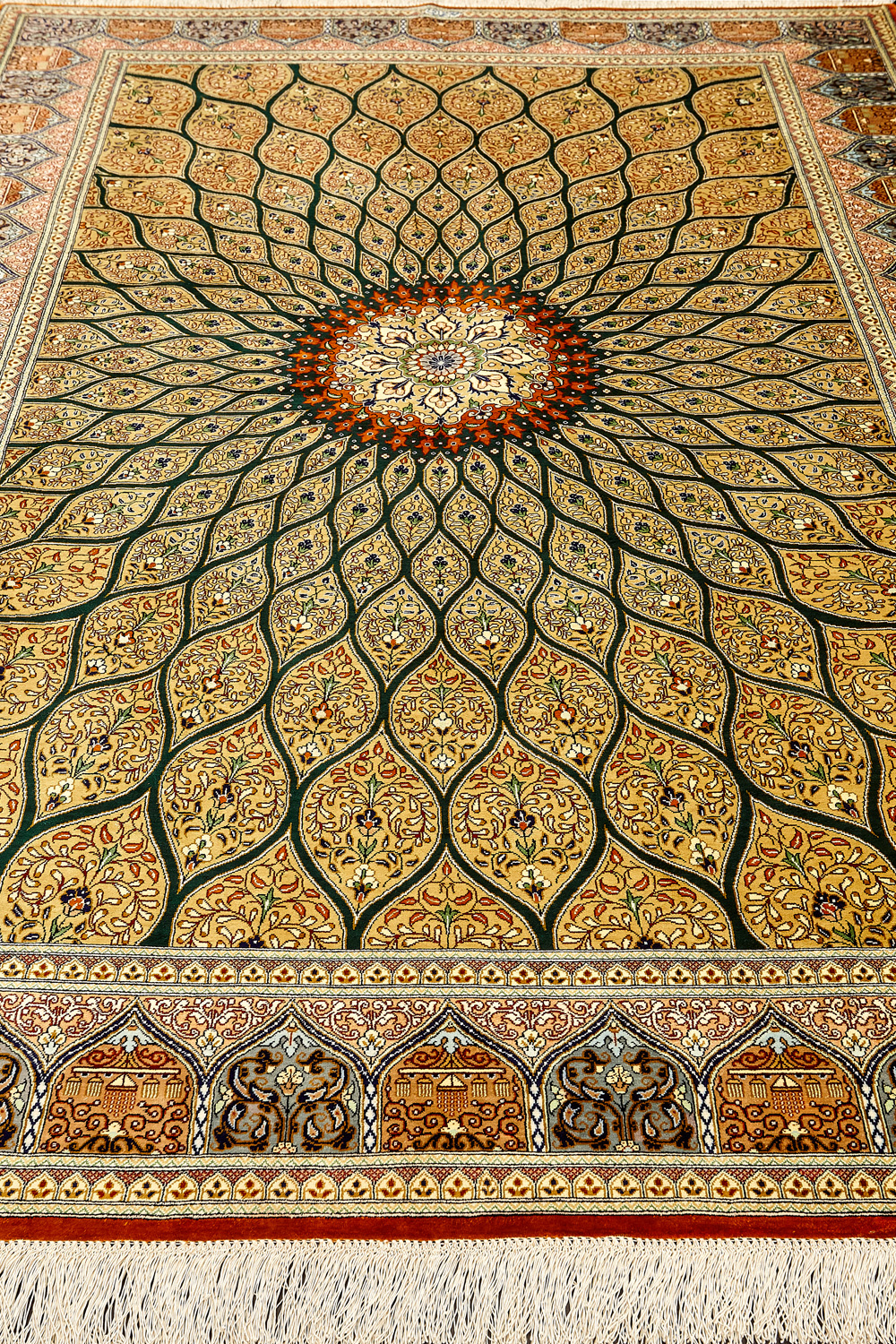 Детальные орнаменты, множество насыщенных оттенков, мягкость и нежность переливающегося шёлка стали отличительными чертами прекрасных ковров и обеспечили им мировую известность.