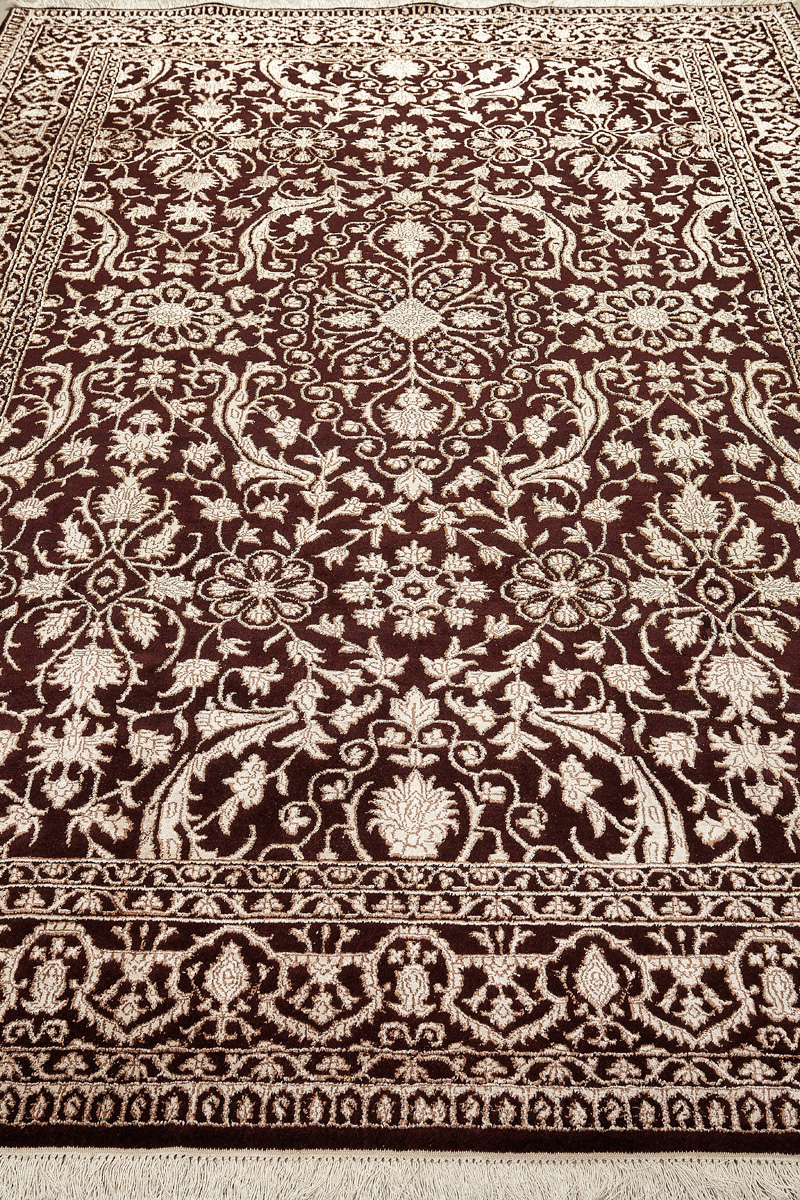 Каждый ковер в этой коллекции соткан вручную из шерсти и арт шёлка опытными индийскими мастерами.