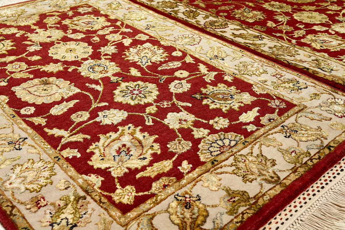Более пяти веков назад в городе Агра зародилась знаменитая индийская школа ковроткачества, прославившаяся не меньше, чем расположенный здесь же Тадж-Махал. Мощное персидское влияние, помноженное на местный колорит, привело к появлению оригинальных орнаментов с богатыми растительными узорами — причудливым цветам, ветвям и листьям, разбросанным по всему полю ковра.
