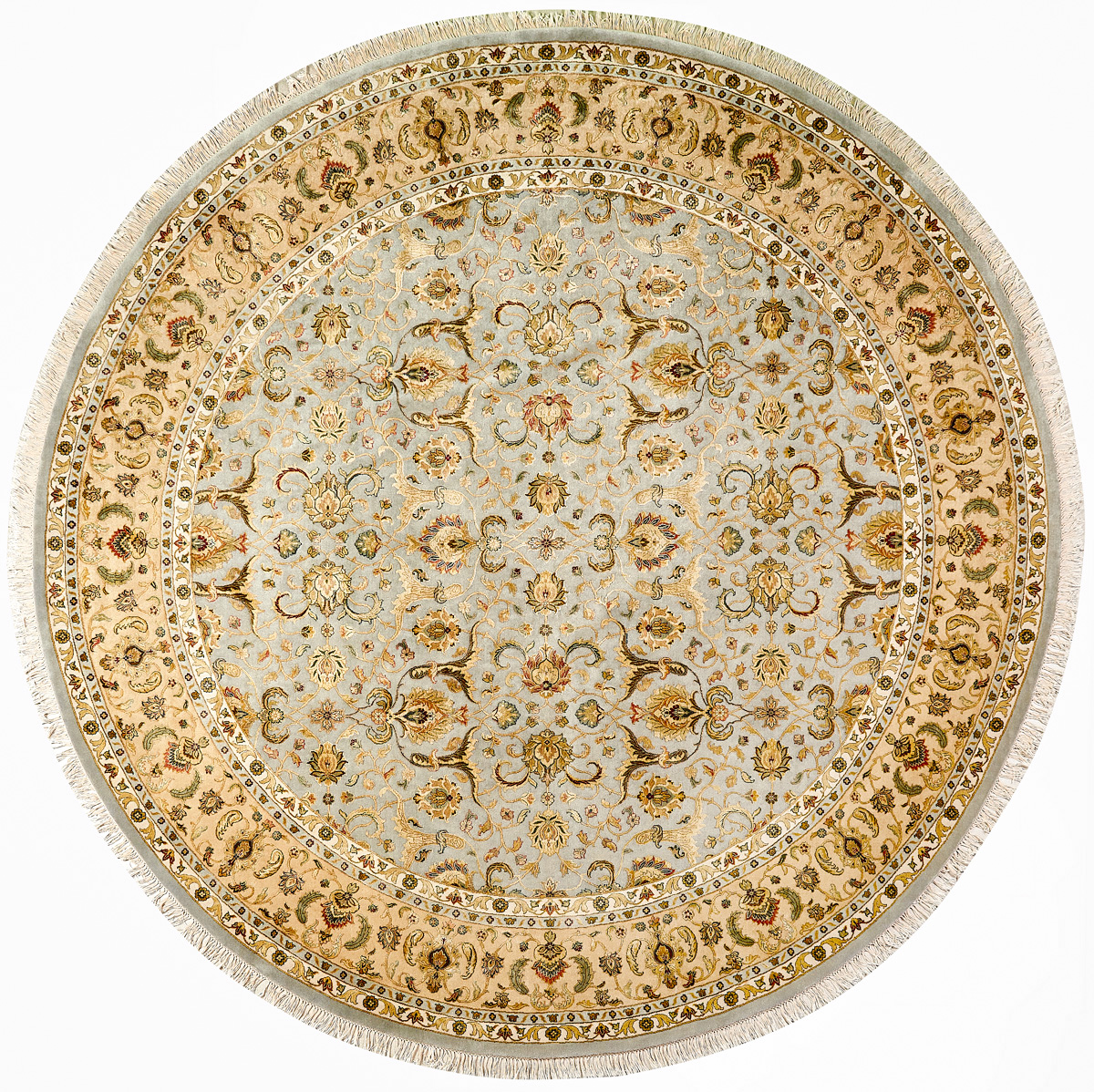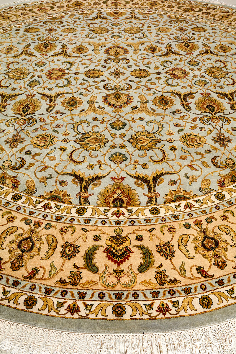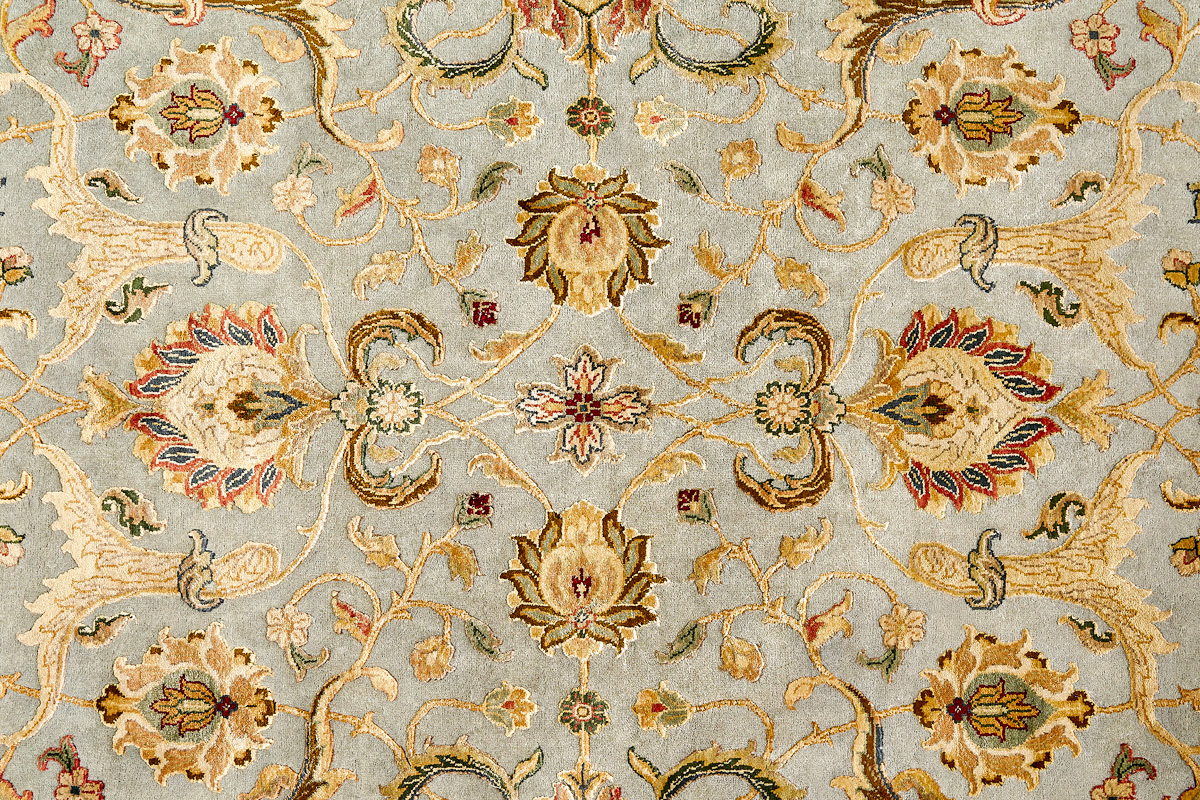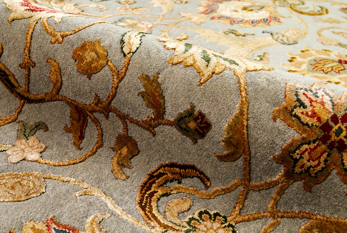 Более пяти веков назад в городе Агра зародилась знаменитая индийская школа ковроткачества, прославившаяся не меньше, чем расположенный здесь же Тадж-Махал. Мощное персидское влияние, помноженное на местный колорит, привело к появлению оригинальных орнаментов с богатыми растительными узорами — причудливым цветам, ветвям и листьям, разбросанным по всему полю ковра.
