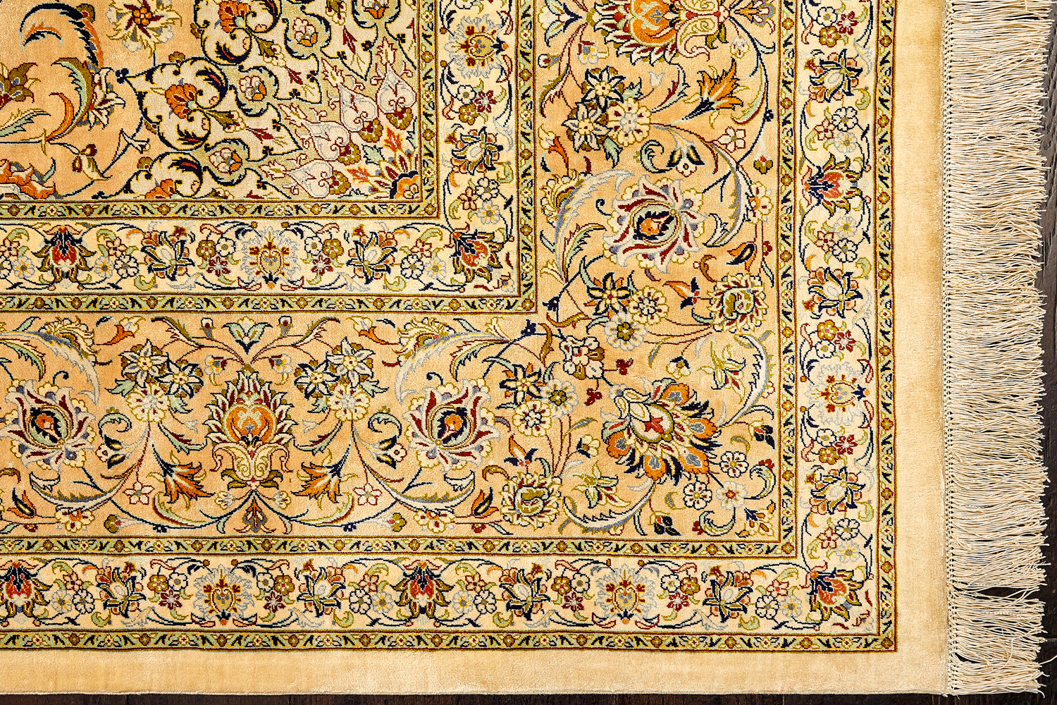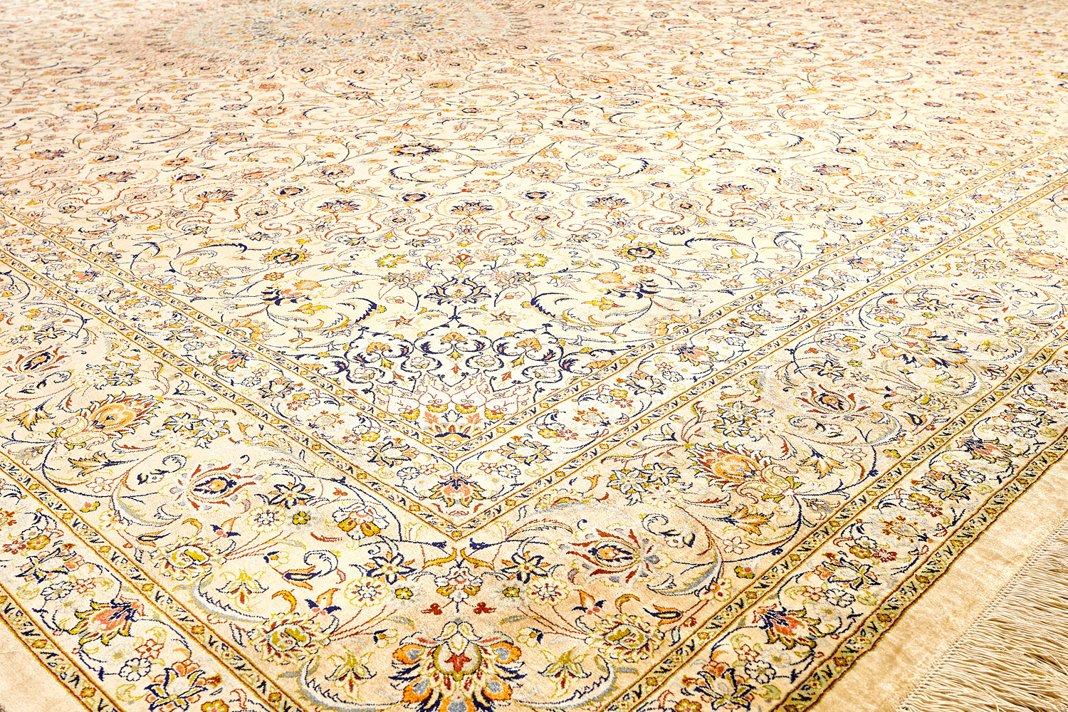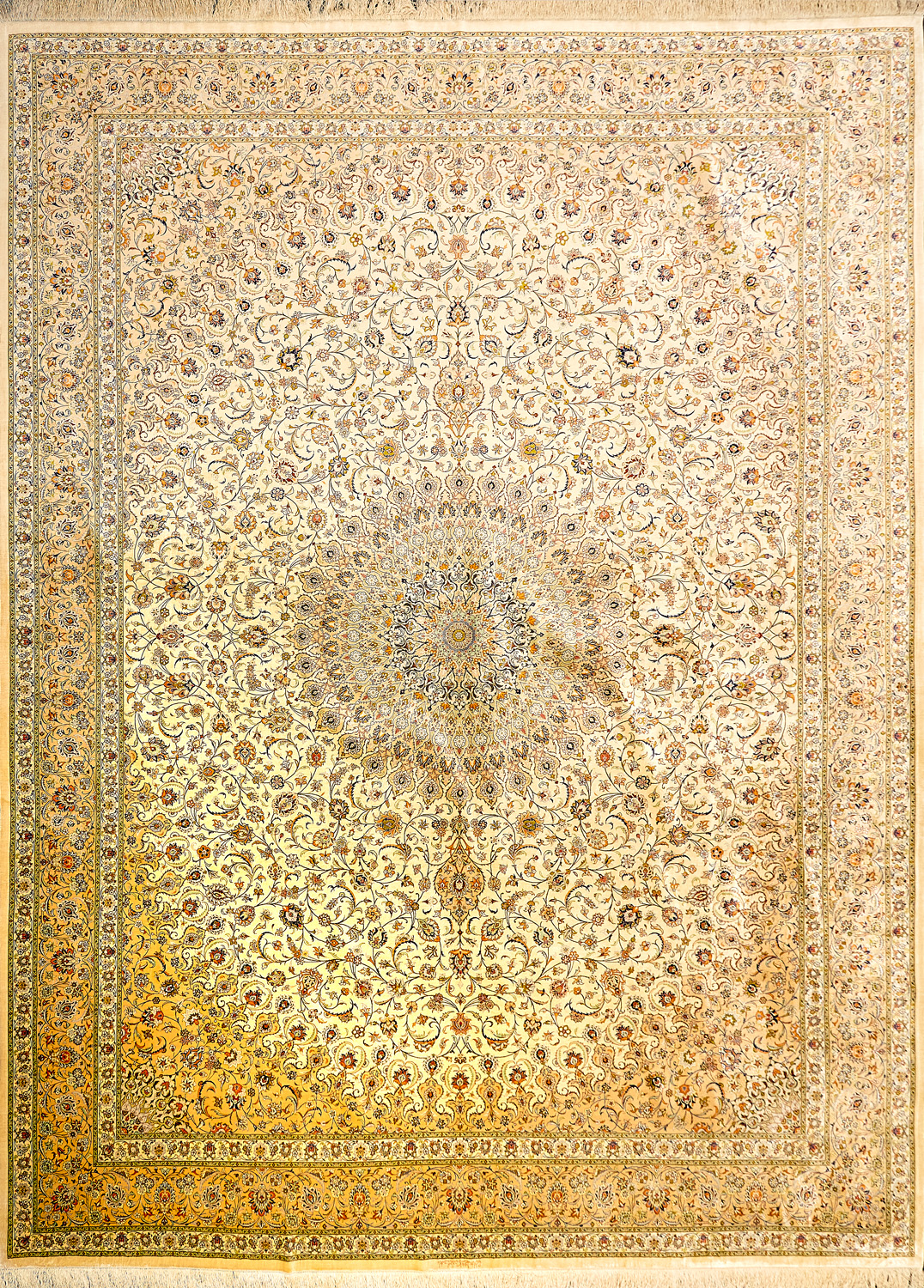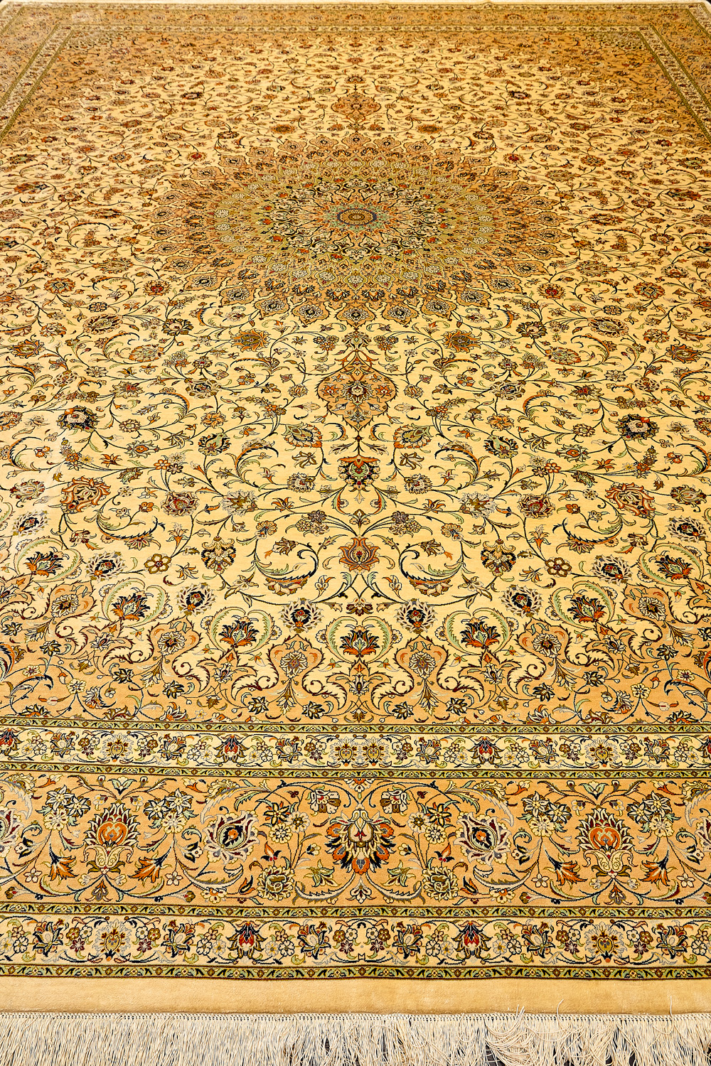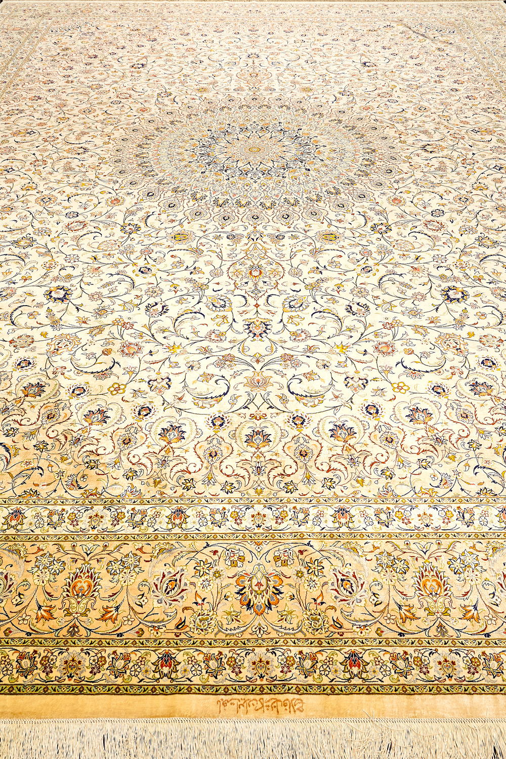 Шёлковые ковры из коллекции Кашан — одни из самых элитных и дорогих ковров в мире. Ковры из 100% шелка ткутся с очень высокой плотностью, от 1 млн до 1,5 млн узелков на 1 кв м. Их отличает очень тонкий и четкий дизайн.