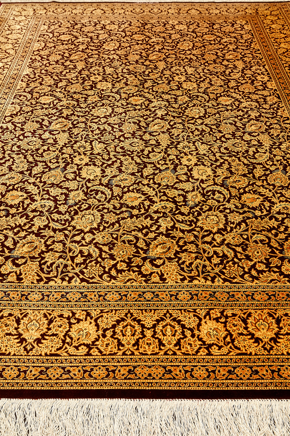Шёлковая нить гибкая и прочная, поэтому ковры из этого материала считаются самыми износостойкими, а по количеству цветов в одном узоре ковры из коллекции Кум, пожалуй, остаются непревзойдёнными.