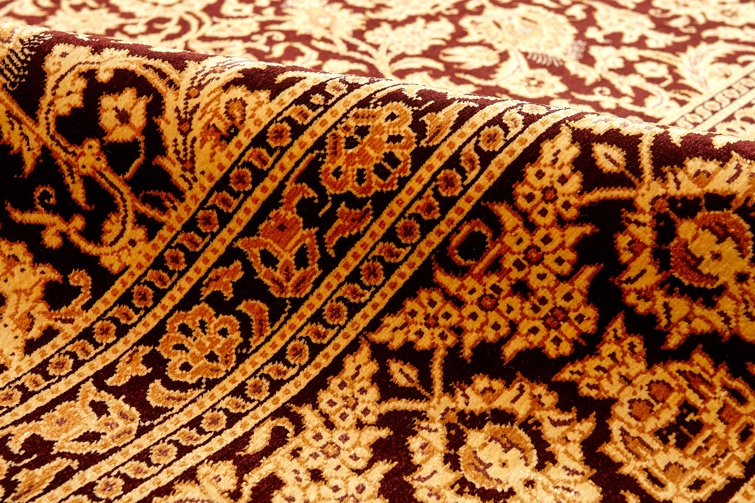 Детальные орнаменты, множество насыщенных оттенков, мягкость и нежность переливающегося шёлка стали отличительными чертами прекрасных ковров и обеспечили им мировую известность.