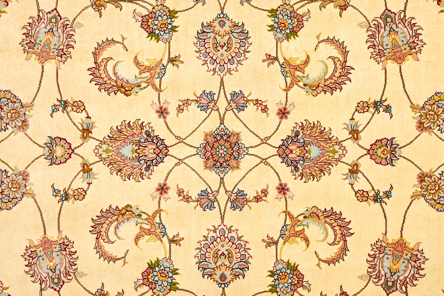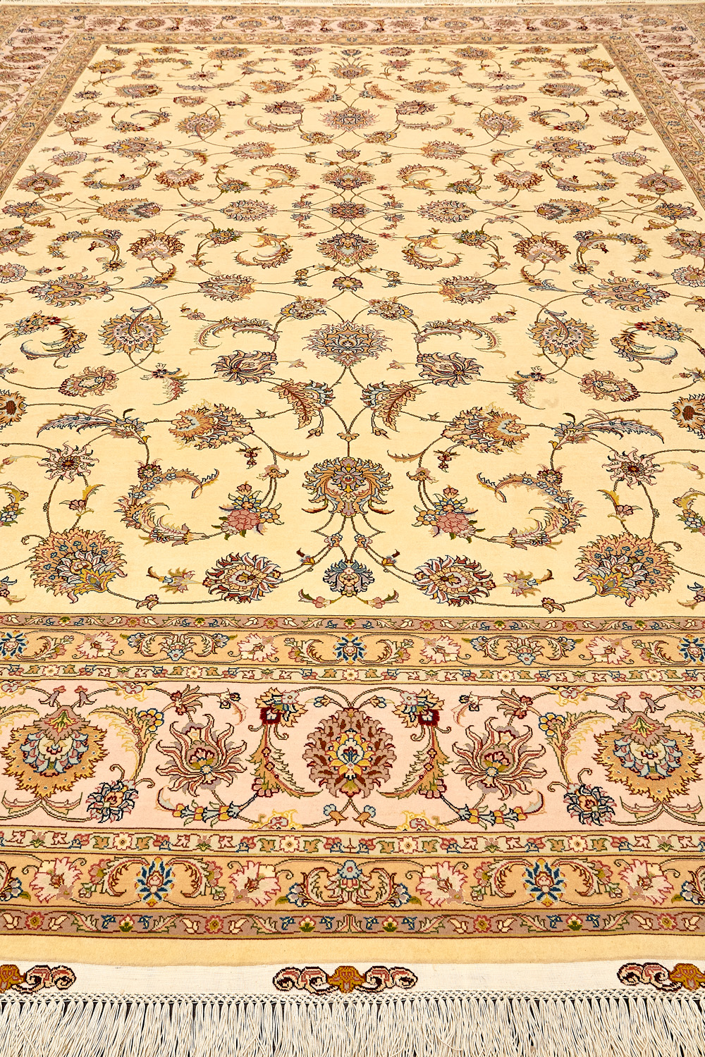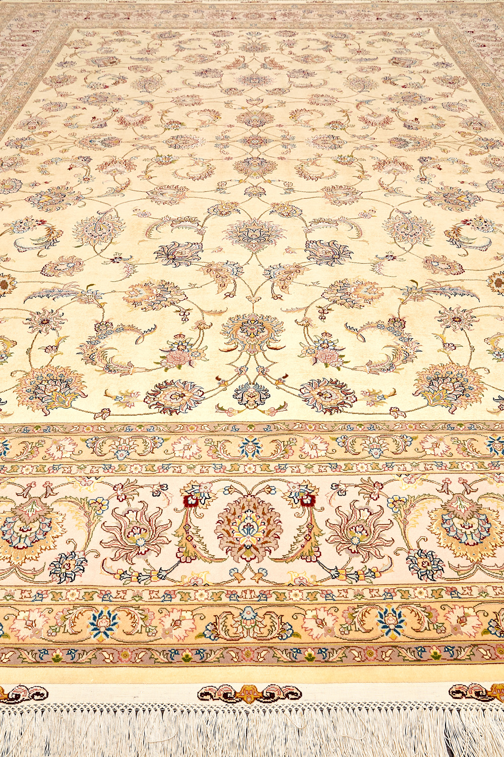 Ковры ткутся из шерсти и шёлка лучшими мастерами Ирана несколько лет, ведь обладают высочайшей плотностью для подобного состава ворса в 600 тысяч узлов на квадратный метр.