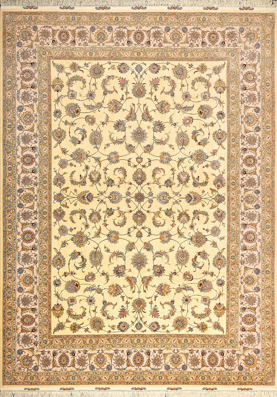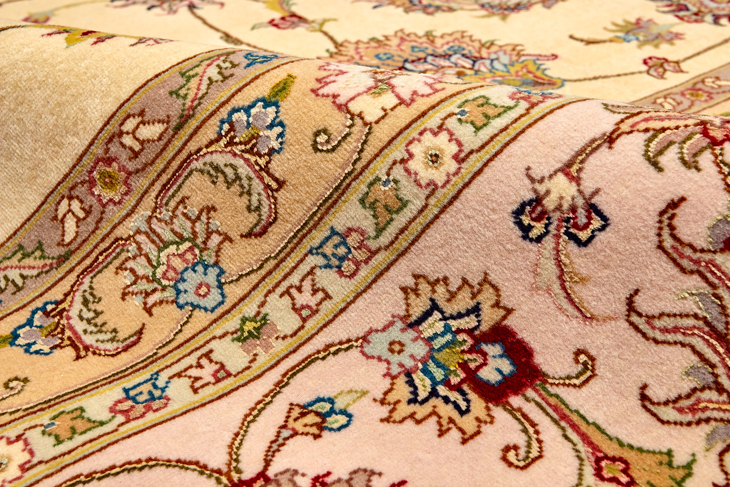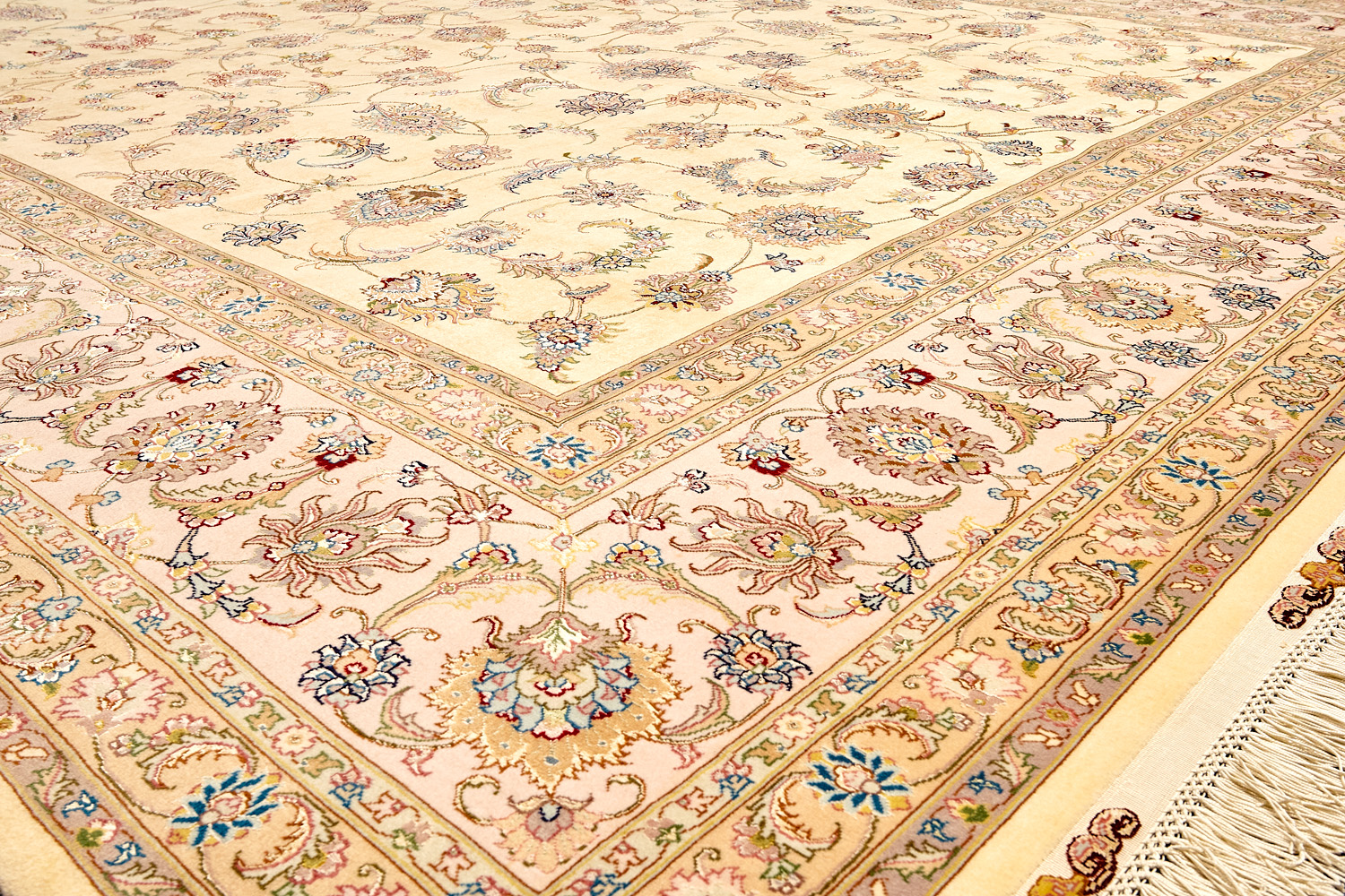 Рассыпанные по всему полю цветы, медальоны и «рыбная чешуя» — основные мотивы в дизайне ковров из коллекции Тебриз, а светлые тона и спокойные пастельные оттенки — основная цветовая палитра.