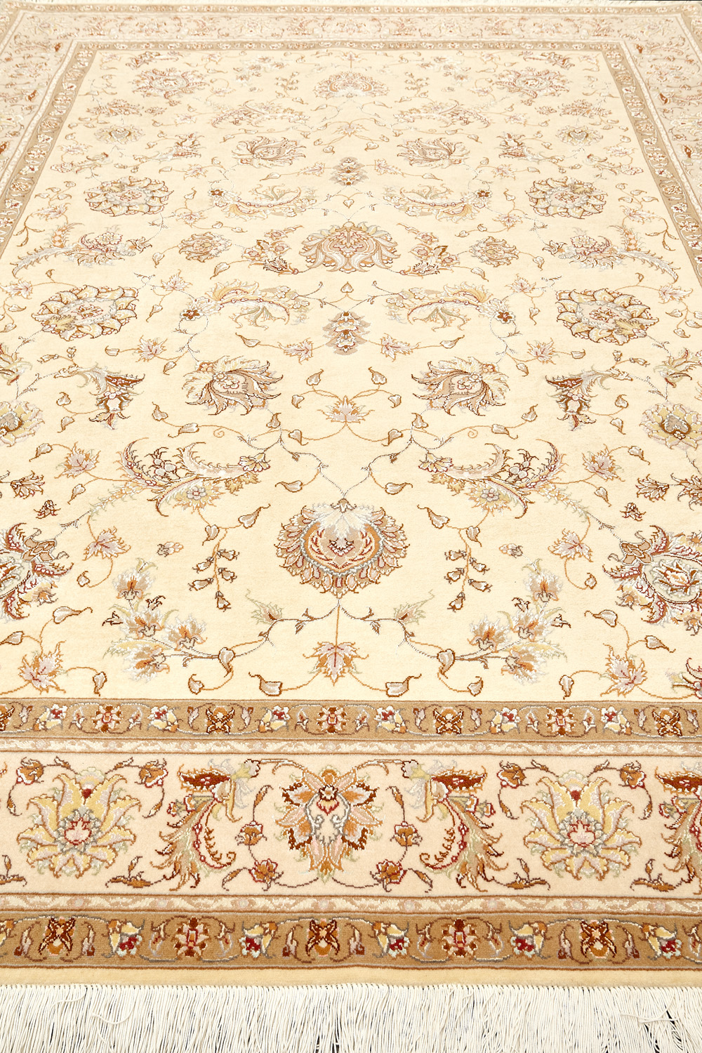 Рассыпанные по всему полю цветы, медальоны и «рыбная чешуя» — основные мотивы в дизайне ковров из коллекции Тебриз, а светлые тона и спокойные пастельные оттенки — основная цветовая палитра.