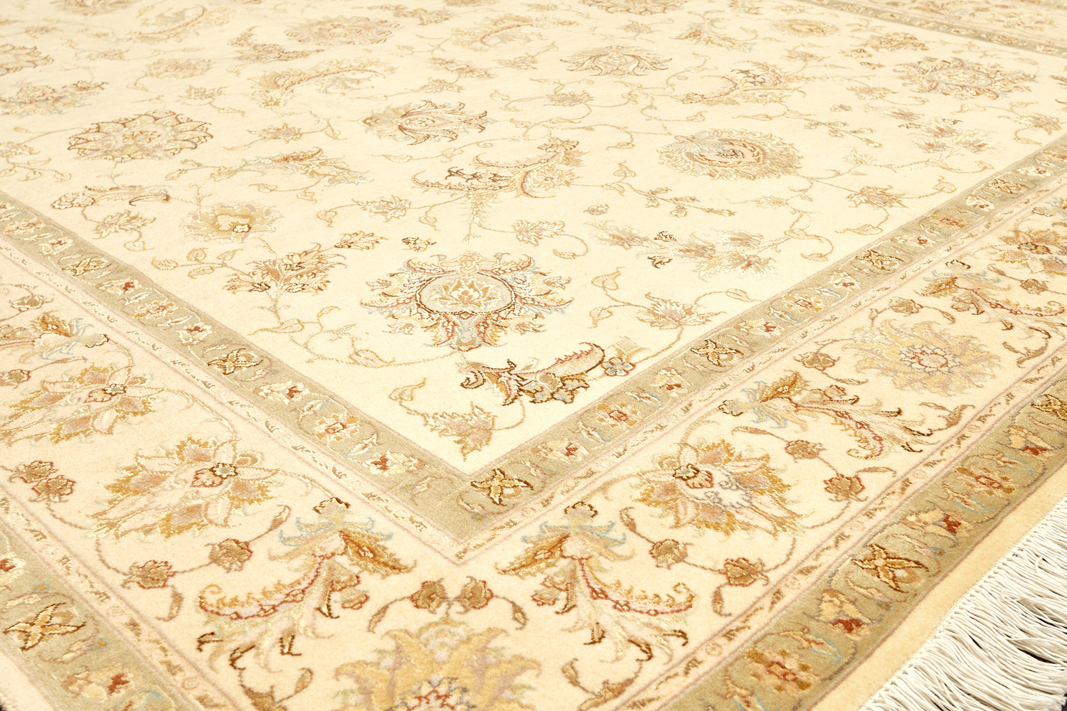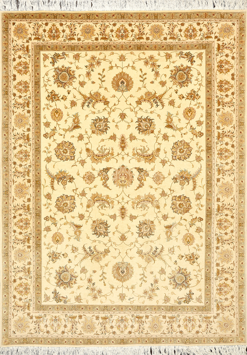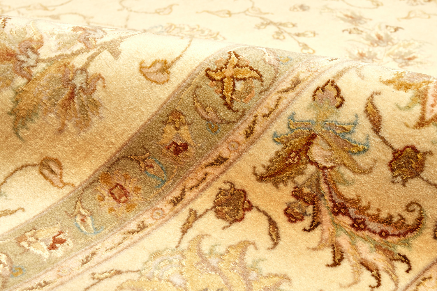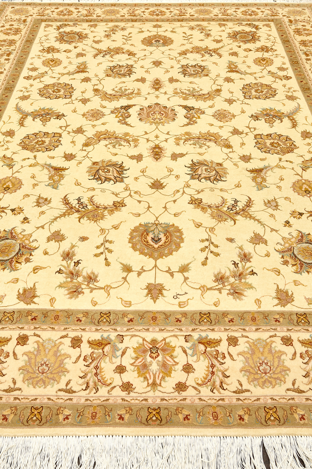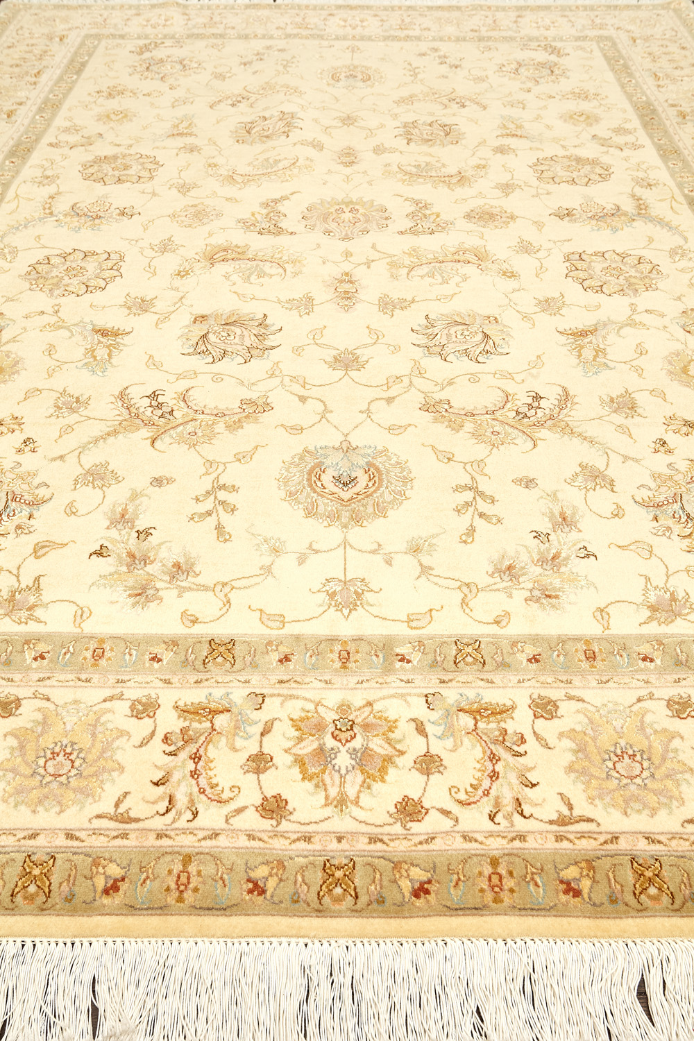 Рассыпанные по всему полю цветы, медальоны и «рыбная чешуя» — основные мотивы в дизайне ковров из коллекции Тебриз, а светлые тона и спокойные пастельные оттенки — основная цветовая палитра.