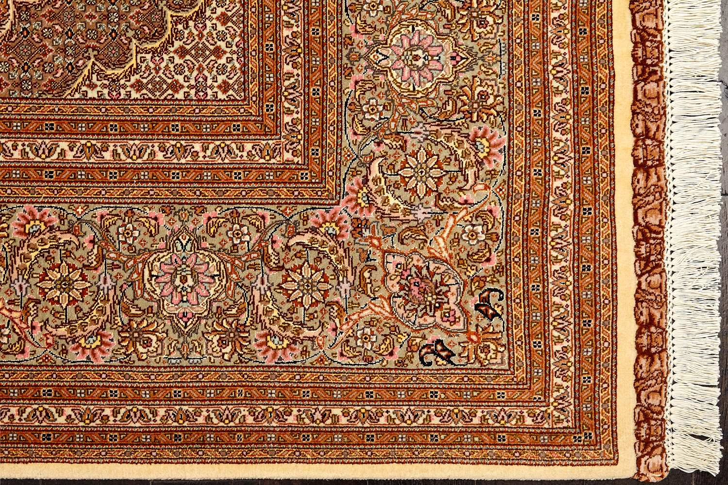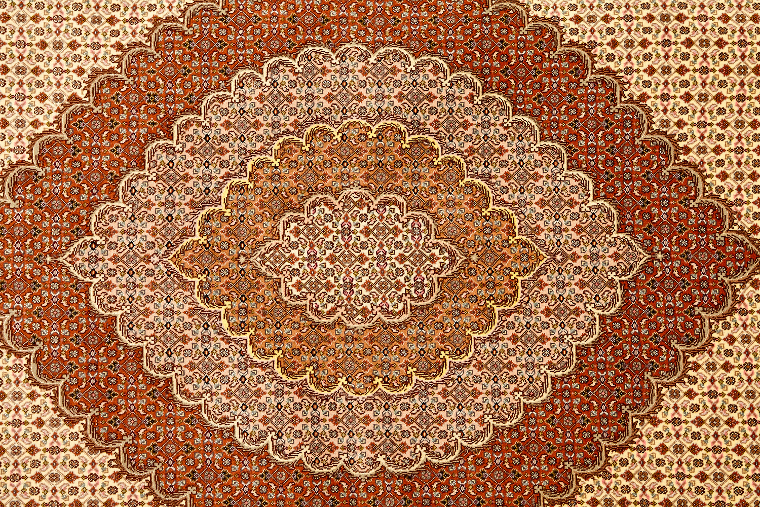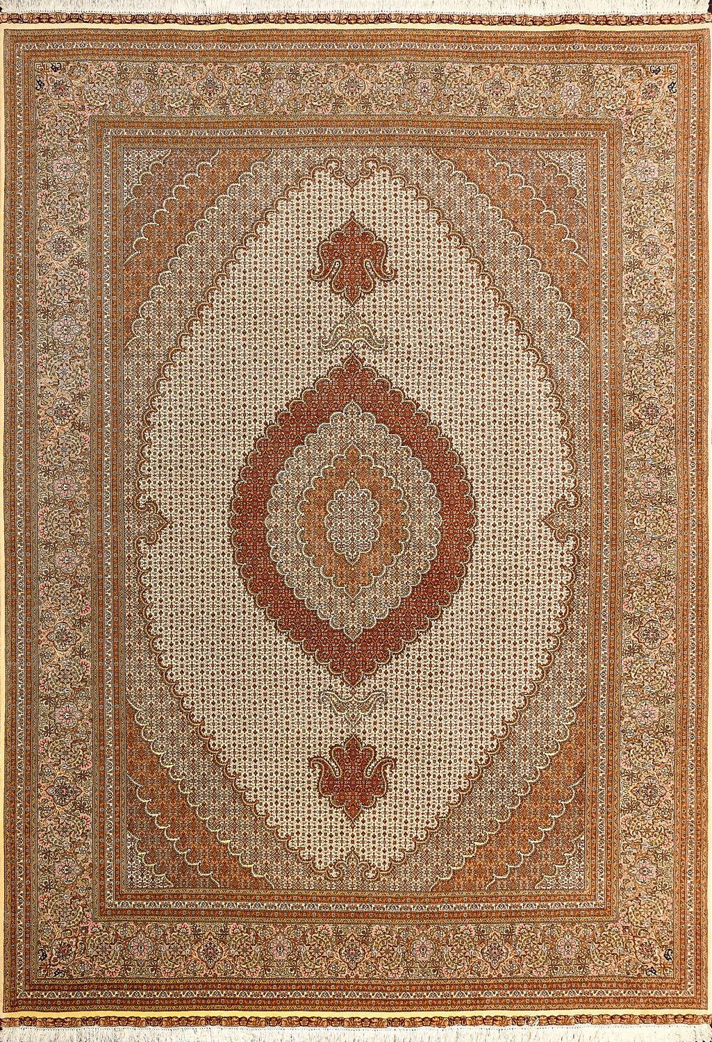 Ковры ткутся из шерсти и шёлка лучшими мастерами Ирана несколько лет, ведь обладают высочайшей плотностью для подобного состава ворса в 600 тысяч узлов на квадратный метр.