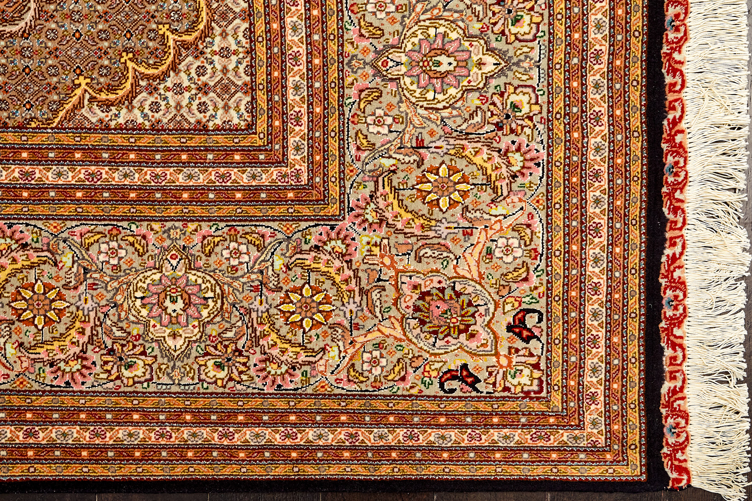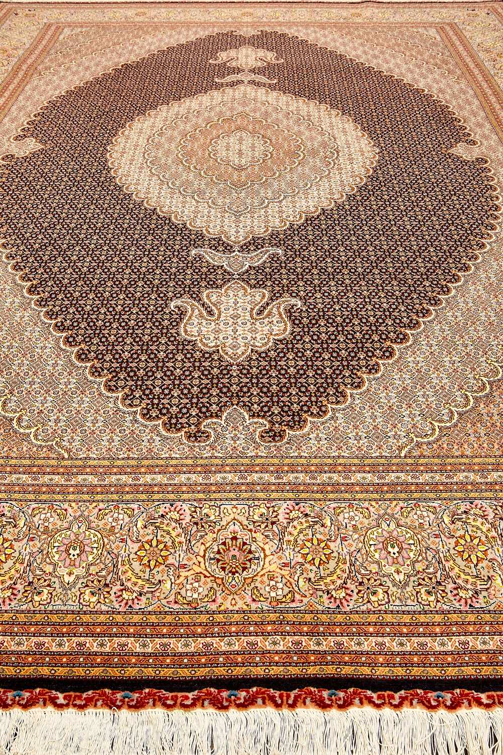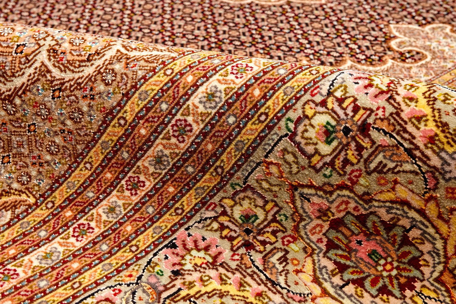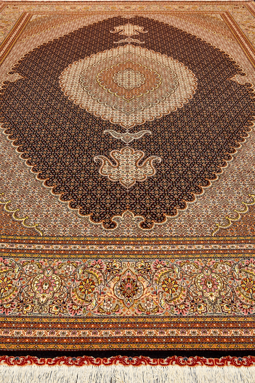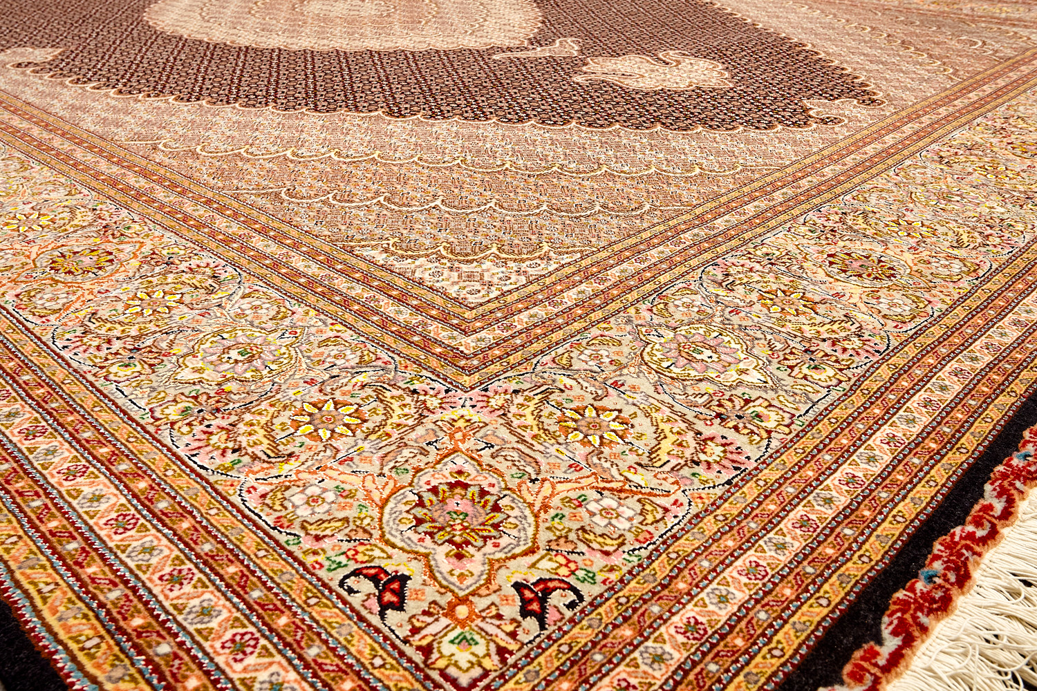 Ковры ткутся из шерсти и шёлка лучшими мастерами Ирана несколько лет, ведь обладают высочайшей плотностью для подобного состава ворса в 600 тысяч узлов на квадратный метр.