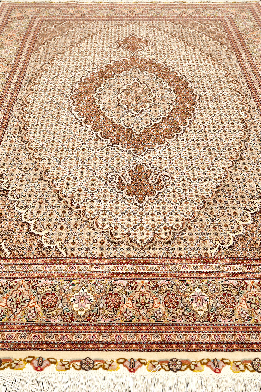 Рассыпанные по всему полю цветы, медальоны и «рыбная чешуя» — основные мотивы в дизайне ковров из коллекции Тебриз, а светлые тона и спокойные пастельные оттенки — основная цветовая палитра.