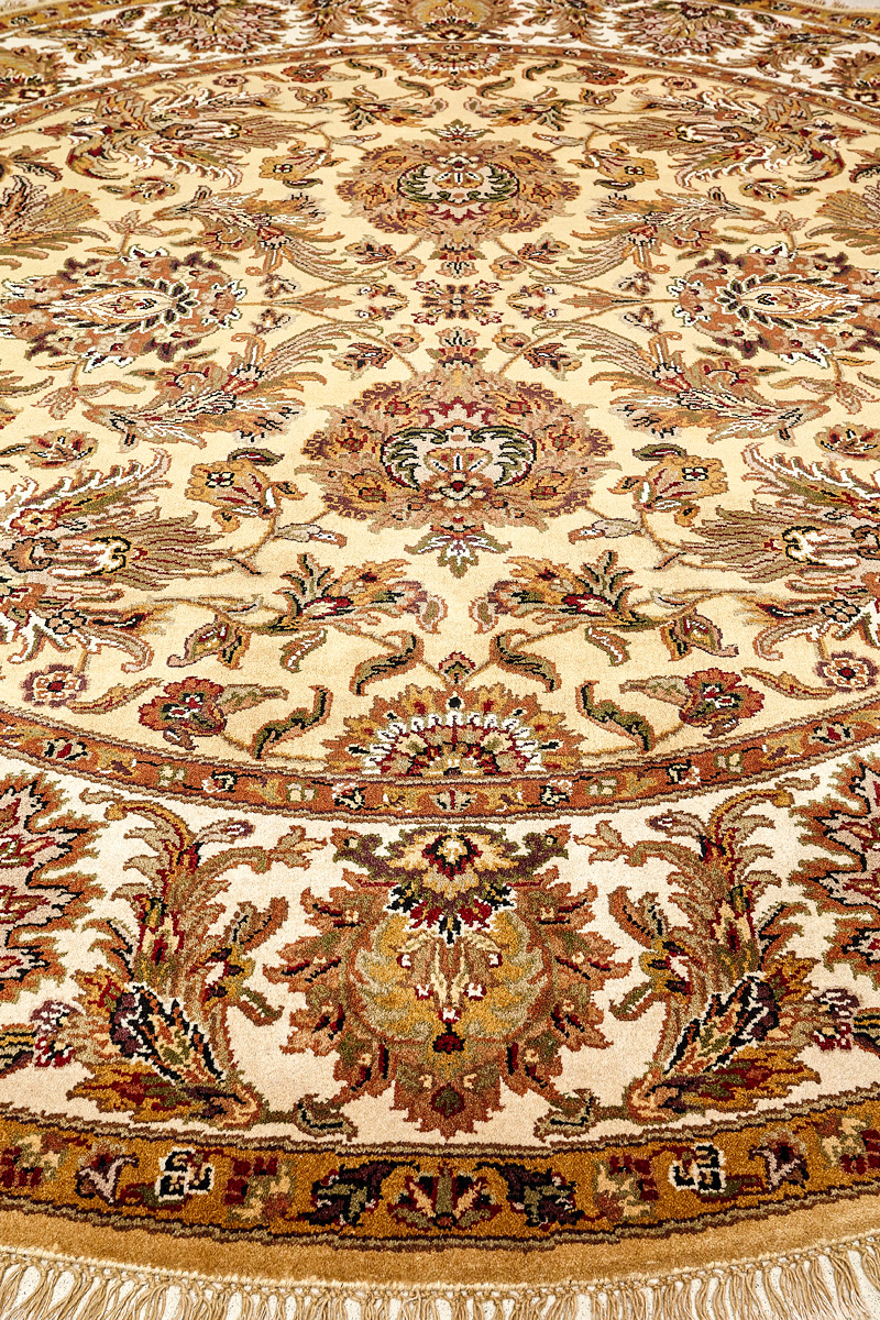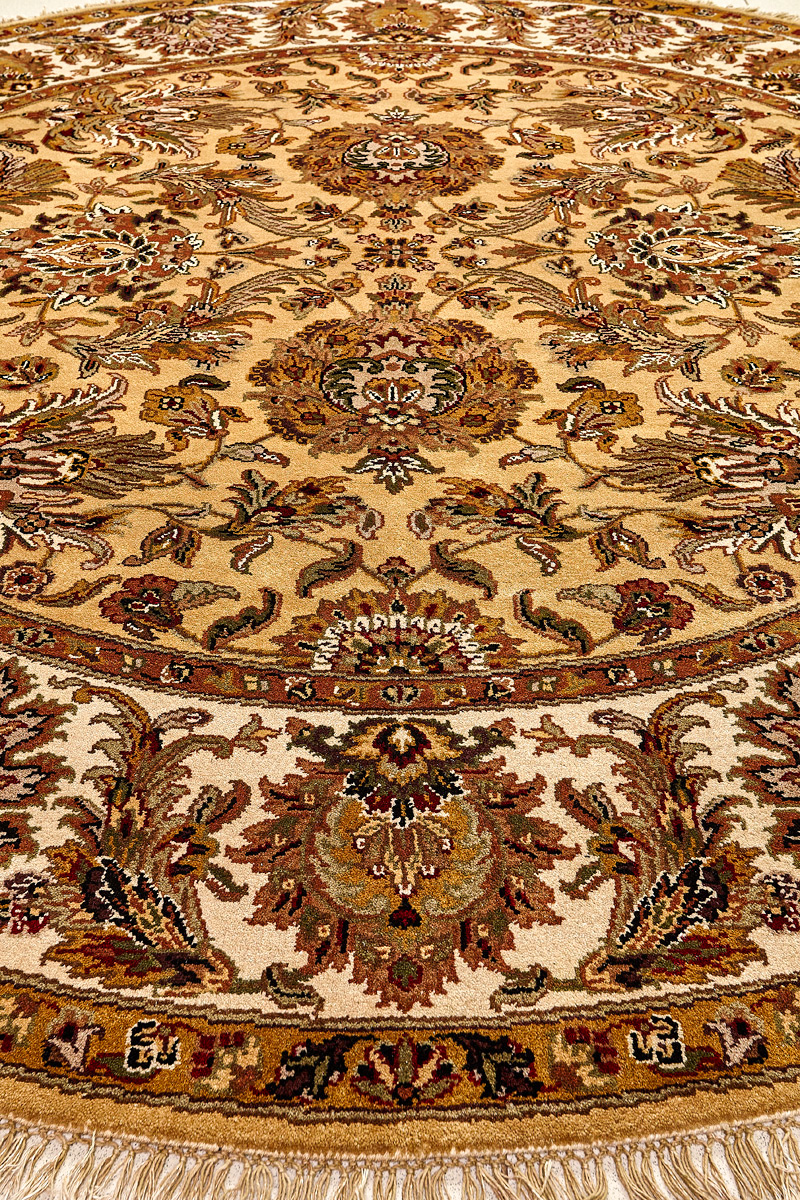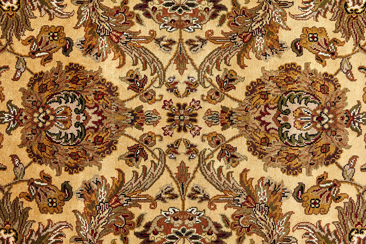Более пяти веков назад в городе Агра зародилась знаменитая индийская школа ковроткачества, прославившаяся не меньше, чем расположенный здесь же Тадж-Махал. Мощное персидское влияние, помноженное на местный колорит, привело к появлению оригинальных орнаментов с богатыми растительными узорами — причудливым цветам, ветвям и листьям, разбросанным по всему полю ковра.