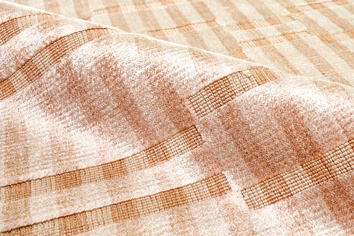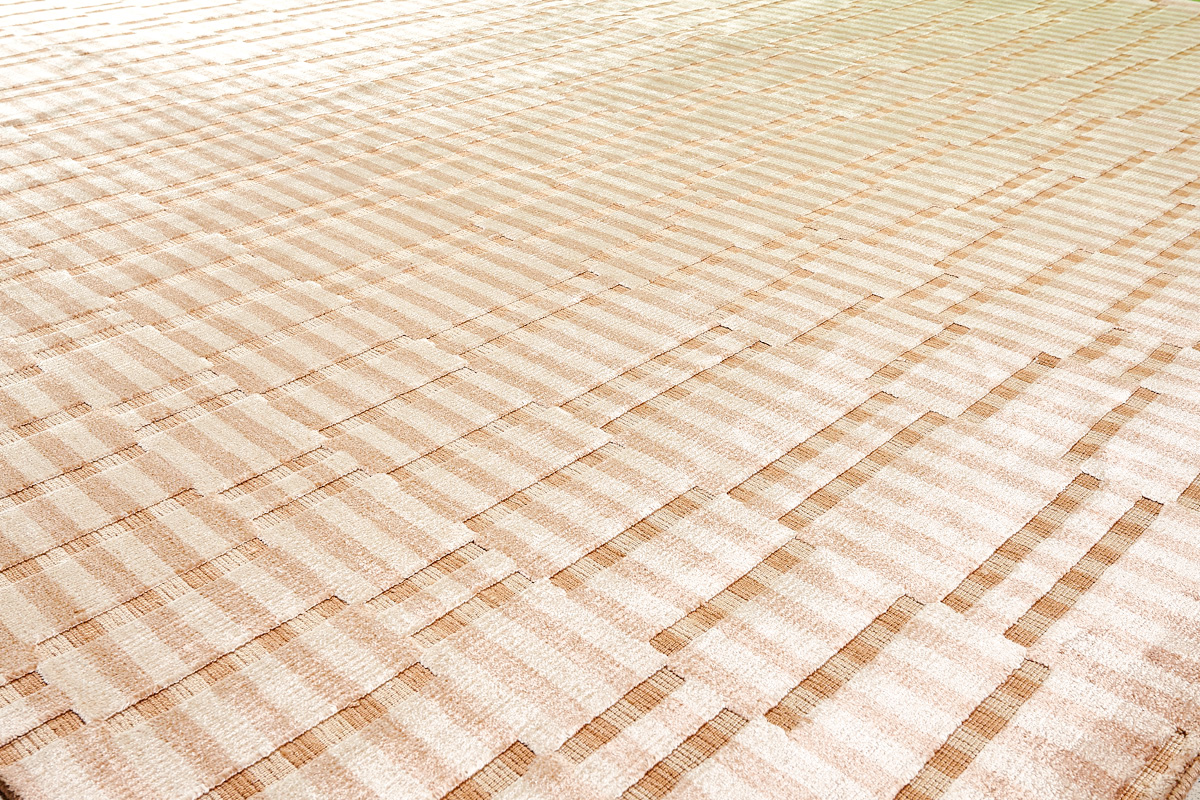 Крупные рисунки в виде линий и фигур на фактурной поверхности ковра превращаются в выразительные композиции. Они акцентируют на себе внимание и добавляют динамики в современный интерьер. Комбинации разных фигур и повторяющийся орнамент задают ритмическую основу пространству, привносят в него оригинальные оптические иллюзии.