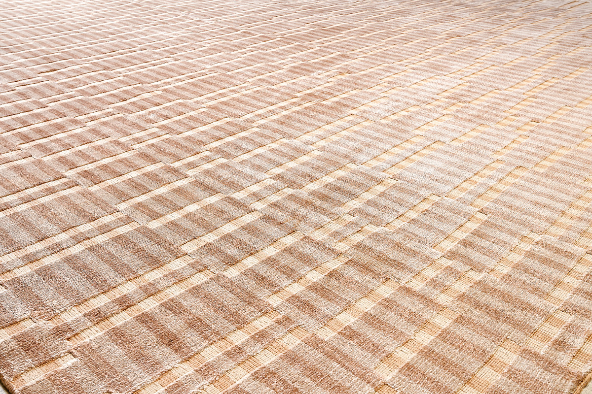 Крупные рисунки в виде линий и фигур на фактурной поверхности ковра превращаются в выразительные композиции. Они акцентируют на себе внимание и добавляют динамики в современный интерьер. Комбинации разных фигур и повторяющийся орнамент задают ритмическую основу пространству, привносят в него оригинальные оптические иллюзии.