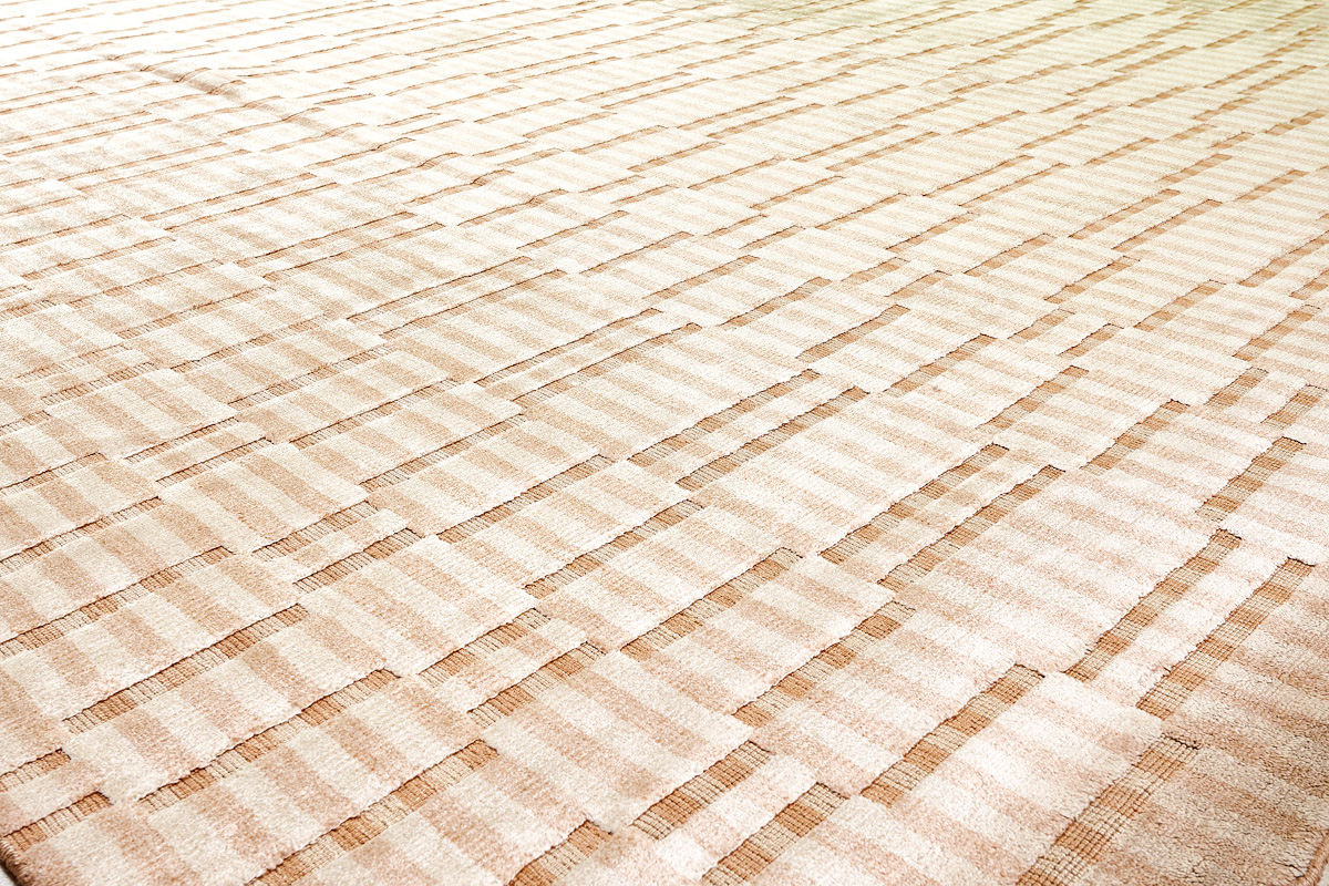 Крупные рисунки в виде линий и фигур на фактурной поверхности ковра превращаются в выразительные композиции. Они акцентируют на себе внимание и добавляют динамики в современный интерьер. Комбинации разных фигур и повторяющийся орнамент задают ритмическую основу пространству, привносят в него оригинальные оптические иллюзии.