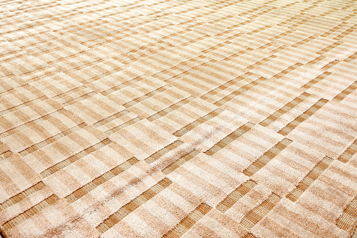 Крупные рисунки в виде линий и фигур на фактурной поверхности ковра превращаются в выразительные композиции. Они акцентируют на себе внимание и добавляют динамики в современный интерьер. Комбинации разных фигур и повторяющийся орнамент задают ритмическую основу пространству, привносят в него оригинальные оптические иллюзии.