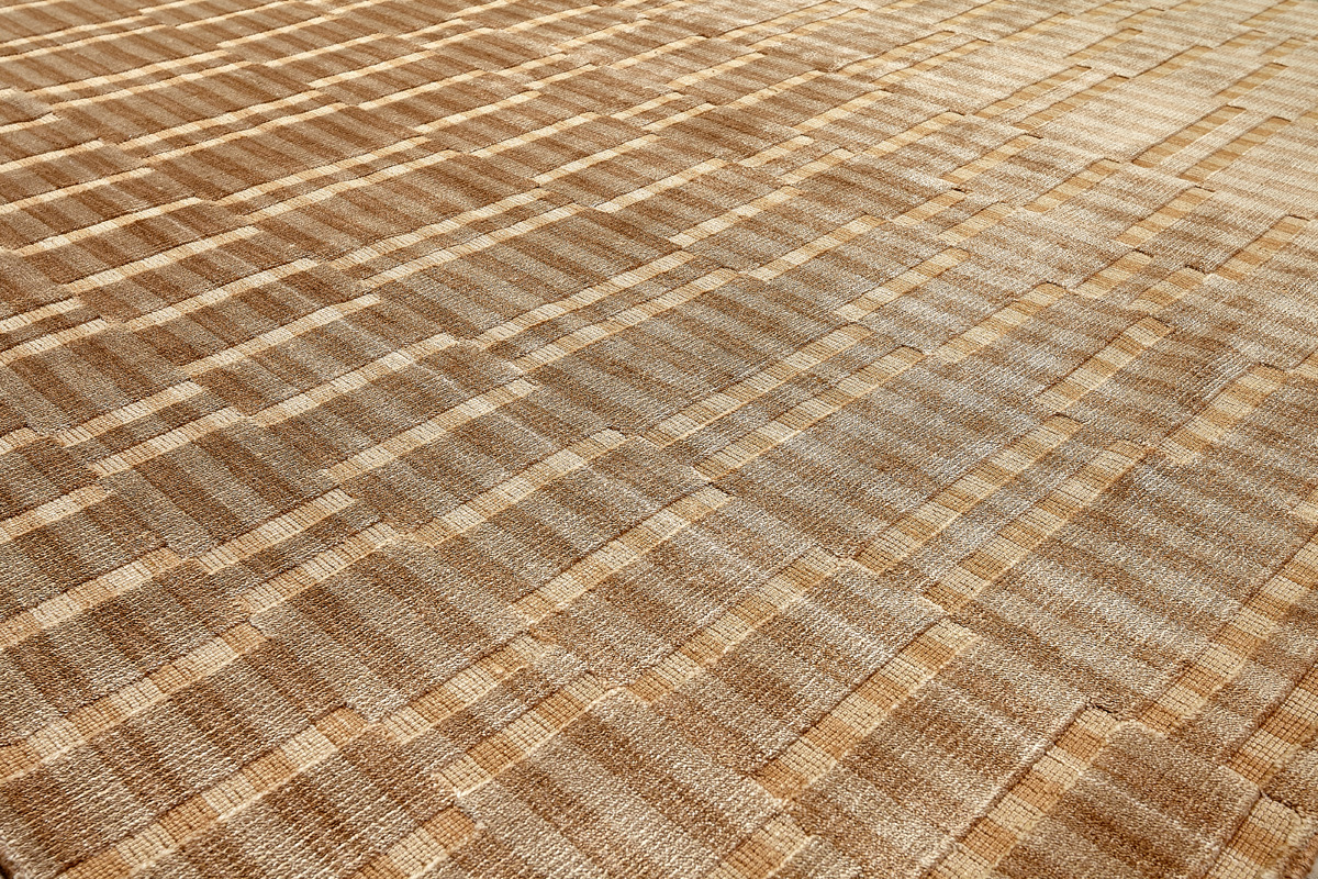 Крупные рисунки в виде линий и фигур на фактурной поверхности ковра превращаются в выразительные композиции. Они акцентируют на себе внимание и добавляют динамики в современный интерьер. Комбинации разных фигур и повторяющийся орнамент задают ритмическую основу пространству, привносят в него оригинальные оптические иллюзии.
