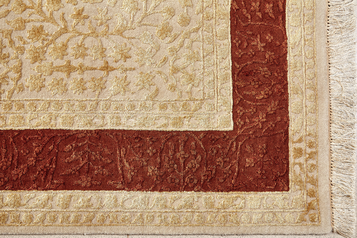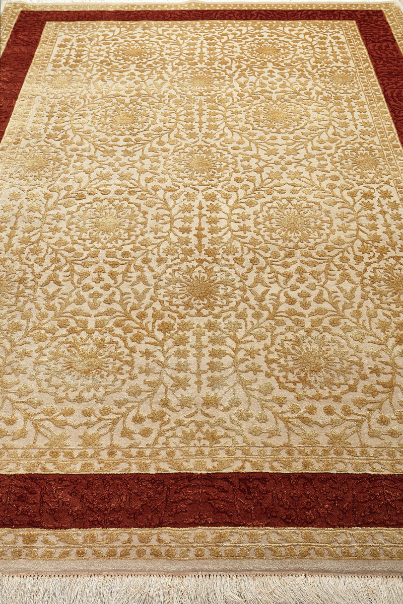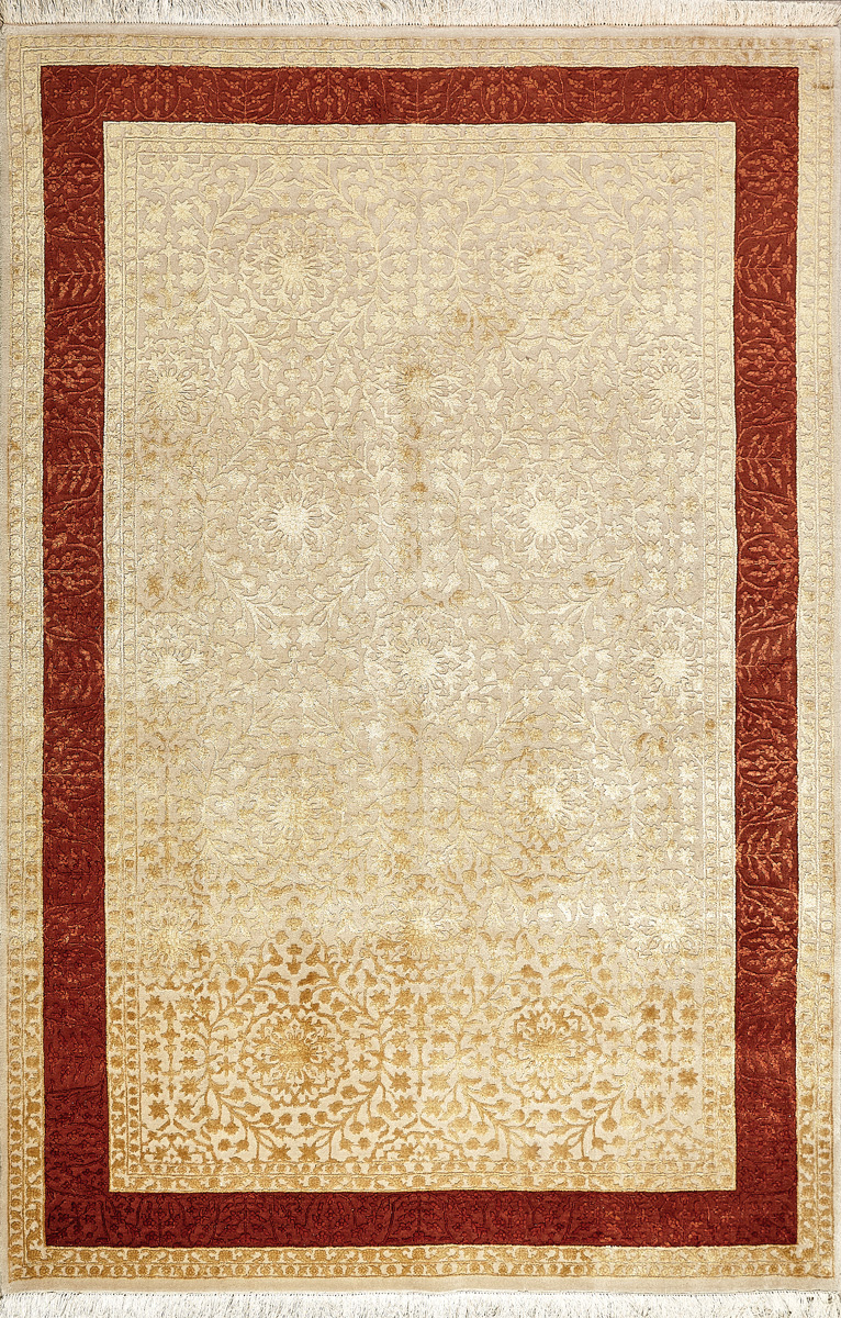 Более пяти веков назад в городе Агра зародилась знаменитая индийская школа ковроткачества, прославившаяся не меньше, чем расположенный здесь же Тадж-Махал. Мощное персидское влияние, помноженное на местный колорит, привело к появлению оригинальных орнаментов с богатыми растительными узорами — причудливым цветам, ветвям и листьям, разбросанным по всему полю ковра.