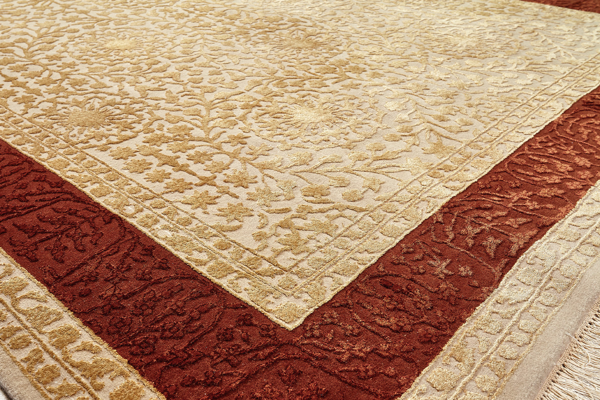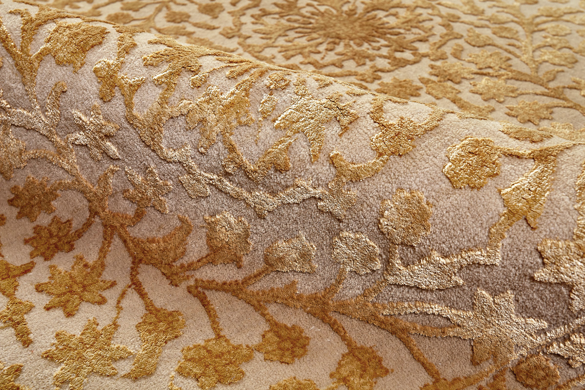Каждый ковер в этой коллекции соткан вручную из шерсти и арт шёлка опытными индийскими мастерами.