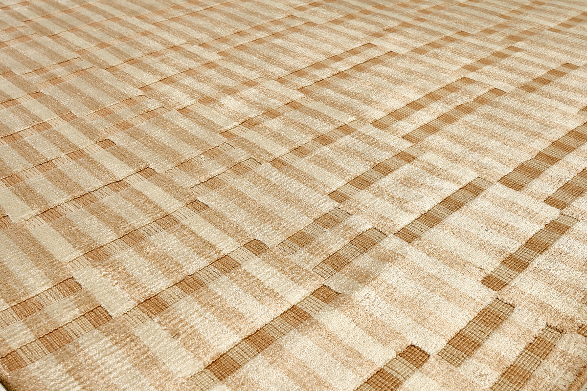 Крупные рисунки в виде линий и фигур на фактурной поверхности ковра превращаются в выразительные композиции. Они акцентируют на себе внимание и добавляют динамики в современный интерьер. Комбинации разных фигур и повторяющийся орнамент задают ритмическую основу пространству, привносят в него оригинальные оптические иллюзии.