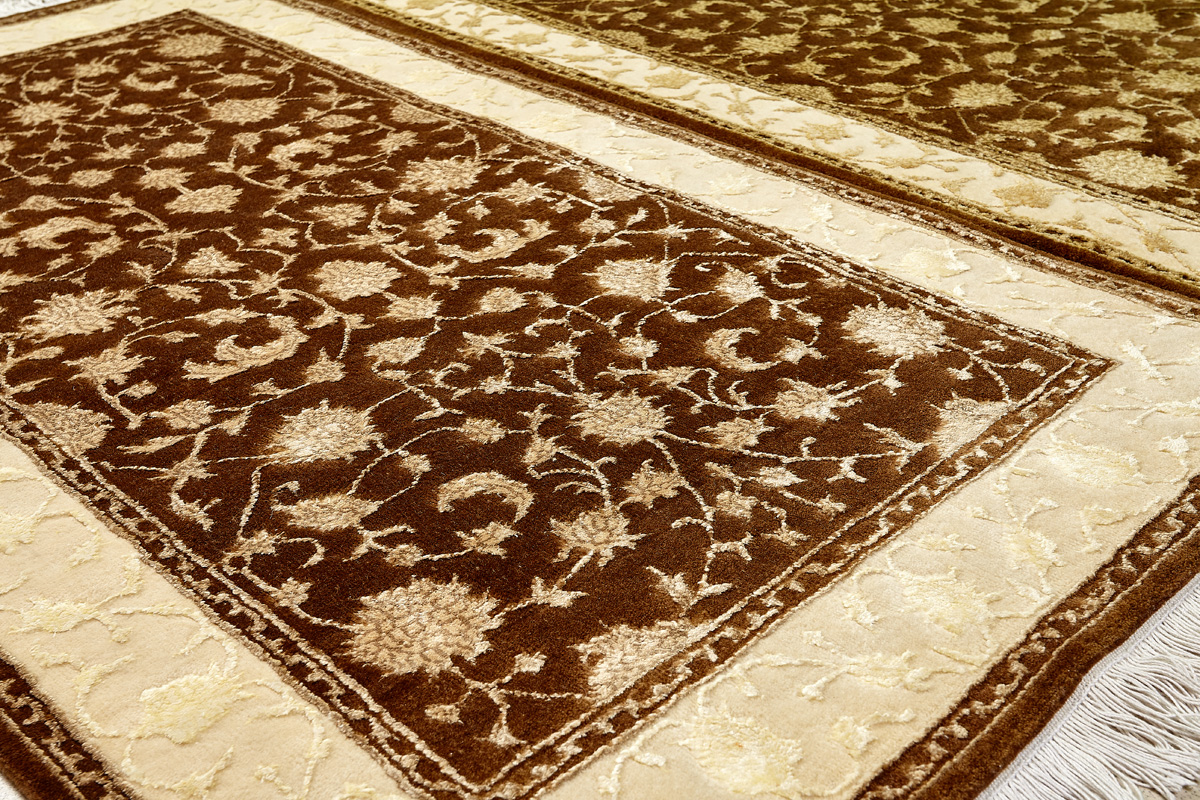 Более пяти веков назад в городе Агра зародилась знаменитая индийская школа ковроткачества, прославившаяся не меньше, чем расположенный здесь же Тадж-Махал. Мощное персидское влияние, помноженное на местный колорит, привело к появлению оригинальных орнаментов с богатыми растительными узорами — причудливым цветам, ветвям и листьям, разбросанным по всему полю ковра.
