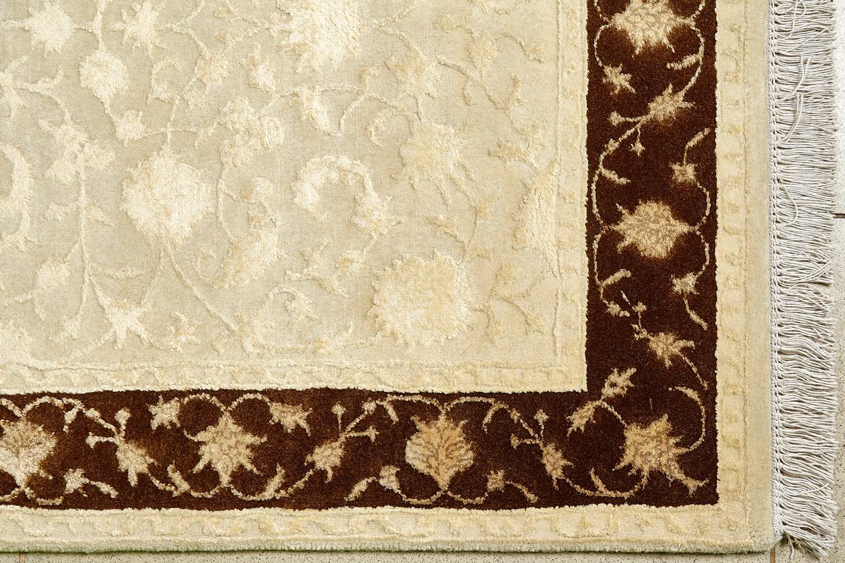 Более пяти веков назад в городе Агра зародилась знаменитая индийская школа ковроткачества, прославившаяся не меньше, чем расположенный здесь же Тадж-Махал. Мощное персидское влияние, помноженное на местный колорит, привело к появлению оригинальных орнаментов с богатыми растительными узорами — причудливым цветам, ветвям и листьям, разбросанным по всему полю ковра.