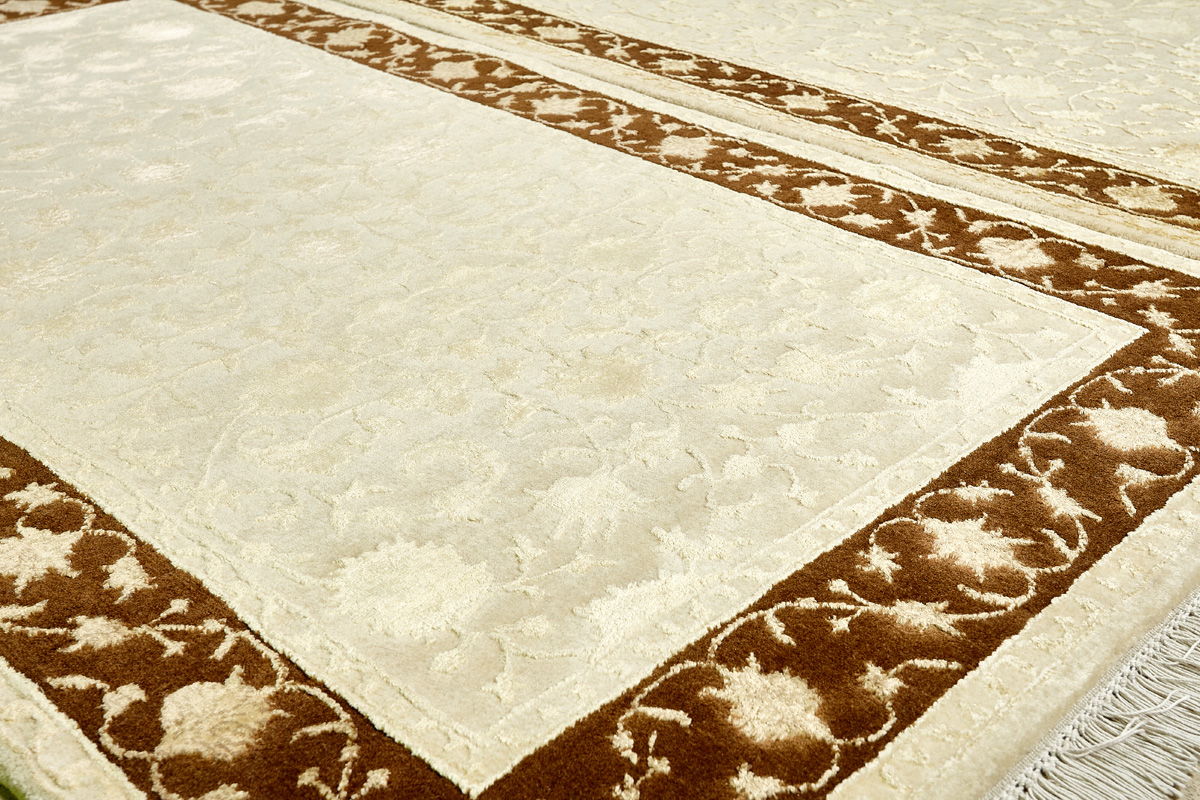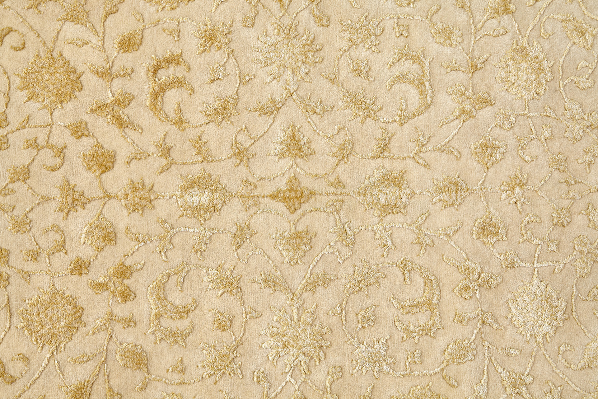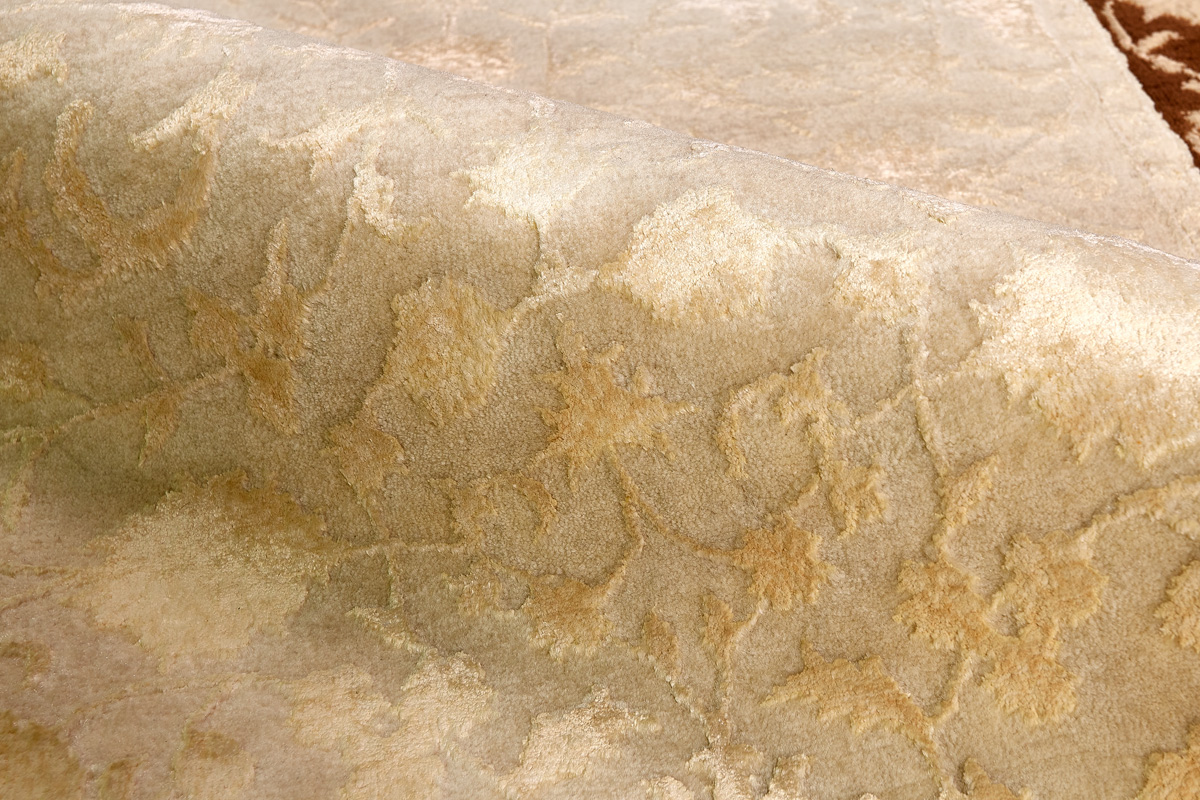 Каждый ковер в этой коллекции соткан вручную из шерсти и арт шёлка опытными индийскими мастерами.