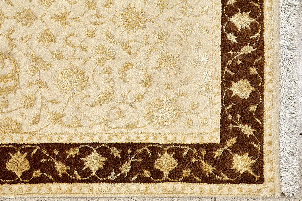 Каждый ковер в этой коллекции соткан вручную из шерсти и арт шёлка опытными индийскими мастерами.