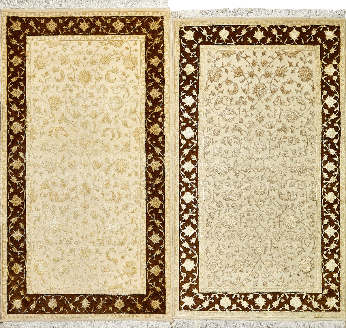 Более пяти веков назад в городе Агра зародилась знаменитая индийская школа ковроткачества, прославившаяся не меньше, чем расположенный здесь же Тадж-Махал. Мощное персидское влияние, помноженное на местный колорит, привело к появлению оригинальных орнаментов с богатыми растительными узорами — причудливым цветам, ветвям и листьям, разбросанным по всему полю ковра.