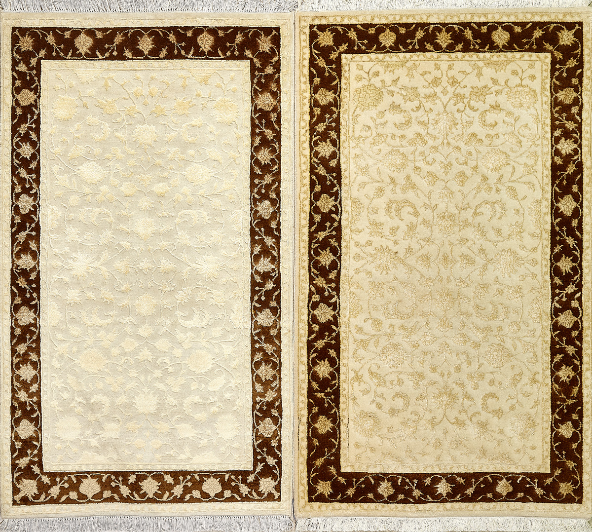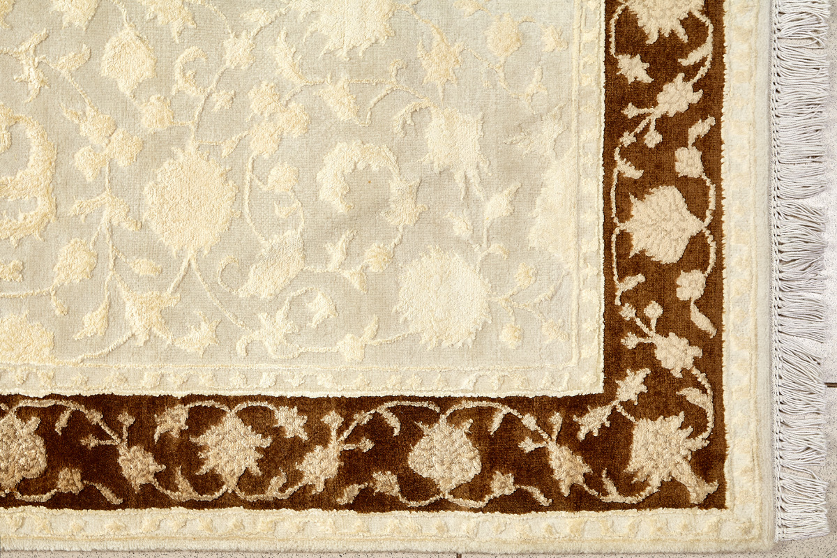 Более пяти веков назад в городе Агра зародилась знаменитая индийская школа ковроткачества, прославившаяся не меньше, чем расположенный здесь же Тадж-Махал. Мощное персидское влияние, помноженное на местный колорит, привело к появлению оригинальных орнаментов с богатыми растительными узорами — причудливым цветам, ветвям и листьям, разбросанным по всему полю ковра.