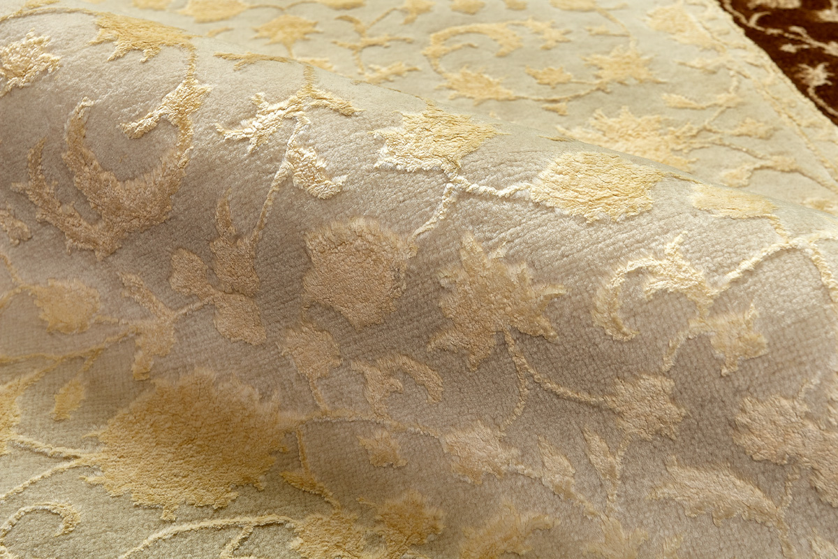 Каждый ковер в этой коллекции соткан вручную из шерсти и арт шёлка опытными индийскими мастерами.