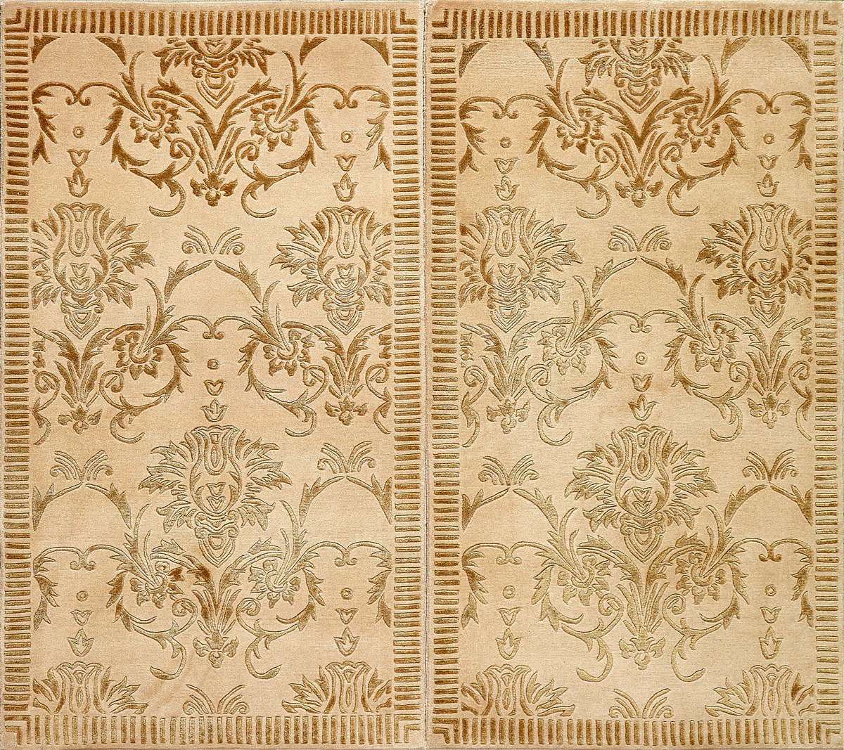 Отличительной особенностью ковров является их состав: помимо овечьей шерсти, добавляется шерсть молодого яка, что придает изделию прочность и шелковистый блеск. Шерсть тщательно вычесывается, промывается, затем из нее изготавливают пряжу.