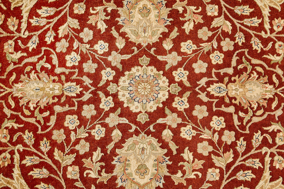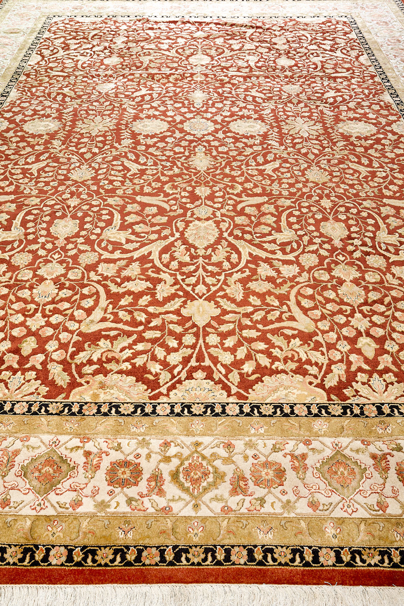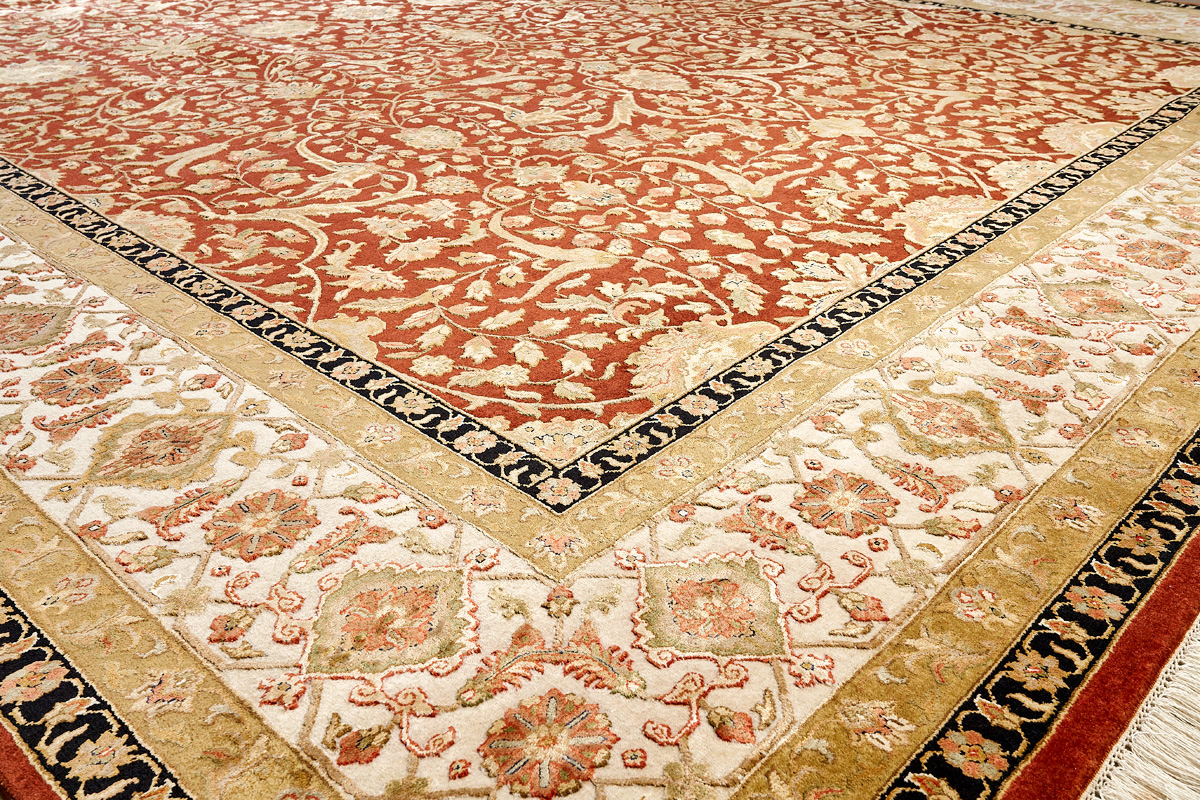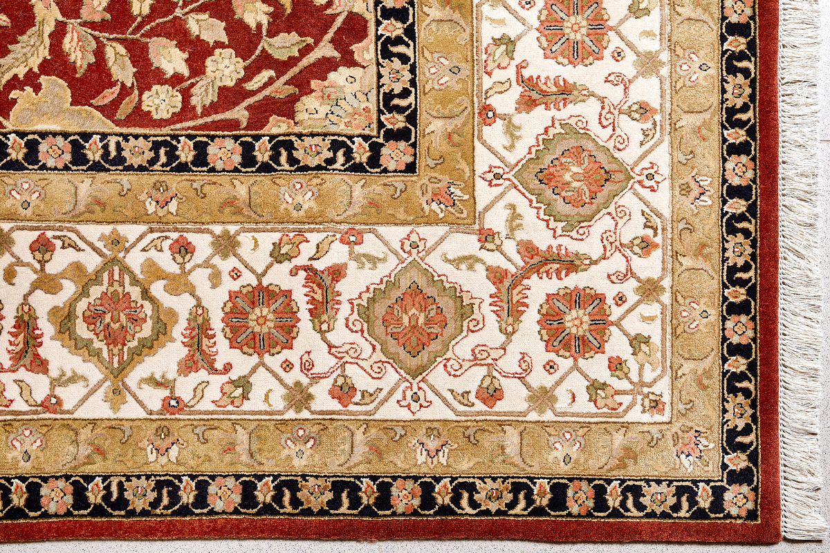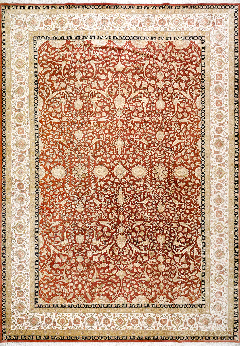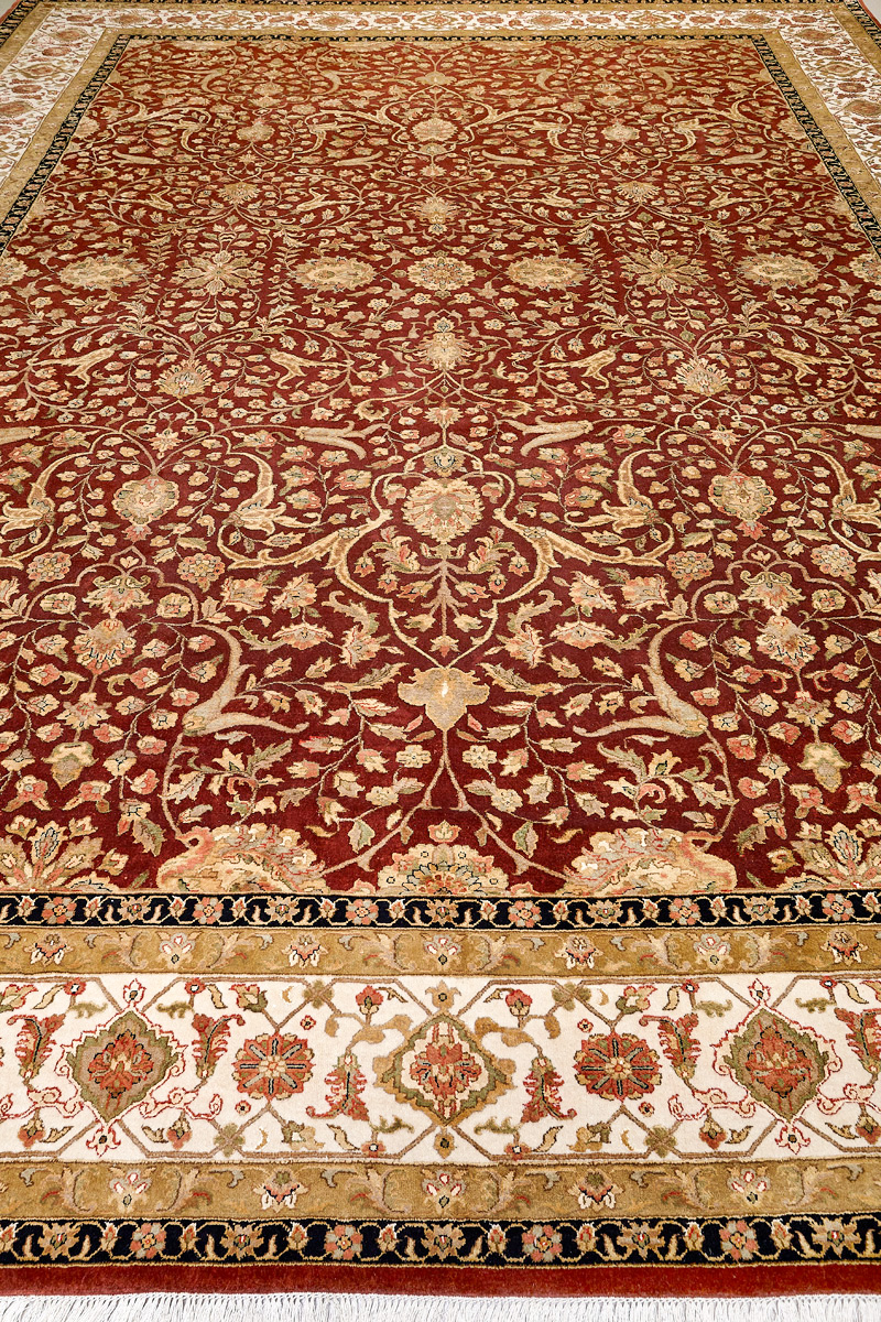 Более пяти веков назад в городе Агра зародилась знаменитая индийская школа ковроткачества, прославившаяся не меньше, чем расположенный здесь же Тадж-Махал. Мощное персидское влияние, помноженное на местный колорит, привело к появлению оригинальных орнаментов с богатыми растительными узорами — причудливым цветам, ветвям и листьям, разбросанным по всему полю ковра.