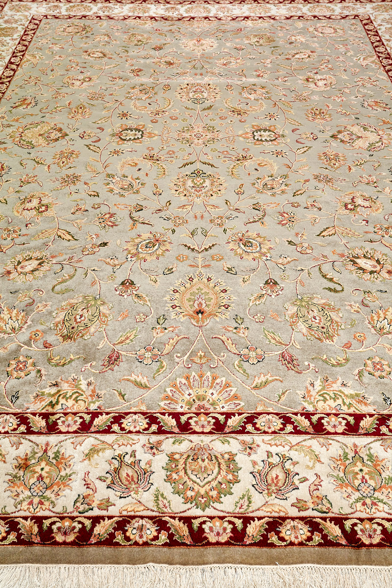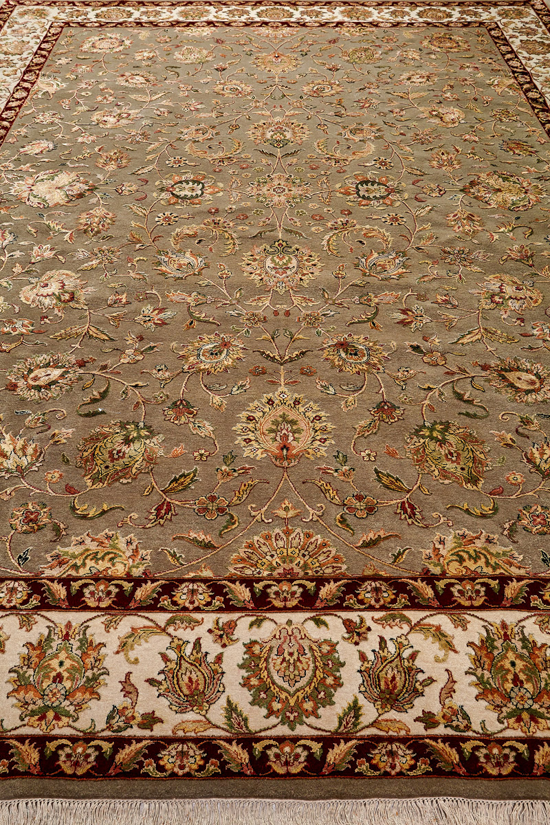 Более пяти веков назад в городе Агра зародилась знаменитая индийская школа ковроткачества, прославившаяся не меньше, чем расположенный здесь же Тадж-Махал. Мощное персидское влияние, помноженное на местный колорит, привело к появлению оригинальных орнаментов с богатыми растительными узорами — причудливым цветам, ветвям и листьям, разбросанным по всему полю ковра.
