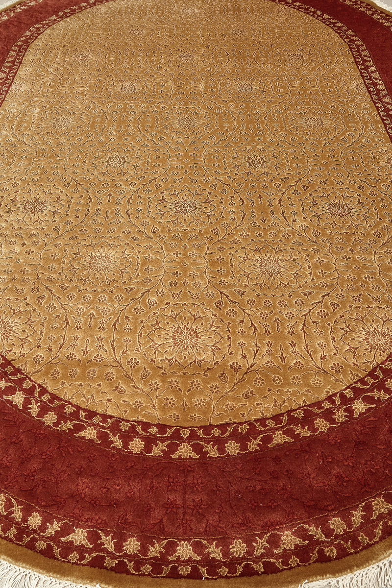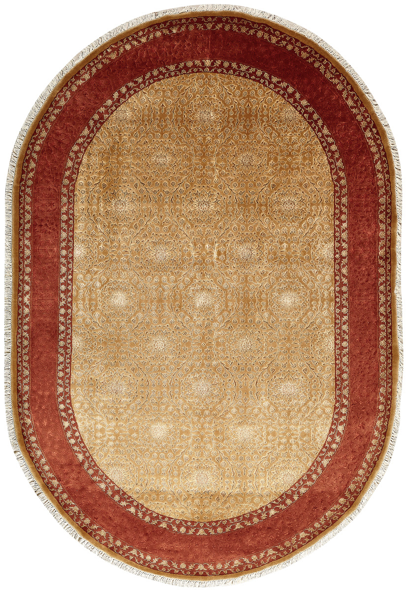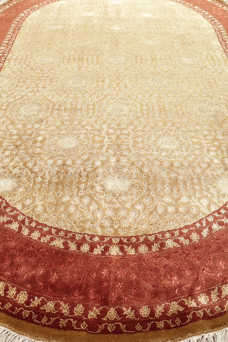 Более пяти веков назад в городе Агра зародилась знаменитая индийская школа ковроткачества, прославившаяся не меньше, чем расположенный здесь же Тадж-Махал. Мощное персидское влияние, помноженное на местный колорит, привело к появлению оригинальных орнаментов с богатыми растительными узорами — причудливым цветам, ветвям и листьям, разбросанным по всему полю ковра.