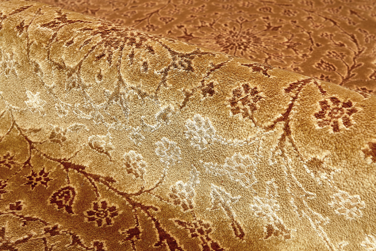 Каждый ковер в этой коллекции соткан вручную из шерсти и арт шёлка опытными индийскими мастерами.