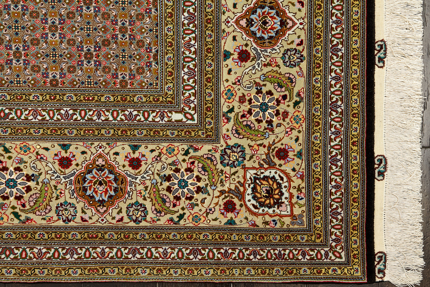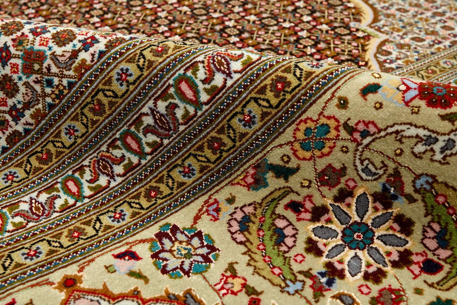 Рассыпанные по всему полю цветы, медальоны и «рыбная чешуя» — основные мотивы в дизайне ковров из коллекции Тебриз, а светлые тона и спокойные пастельные оттенки — основная цветовая палитра.