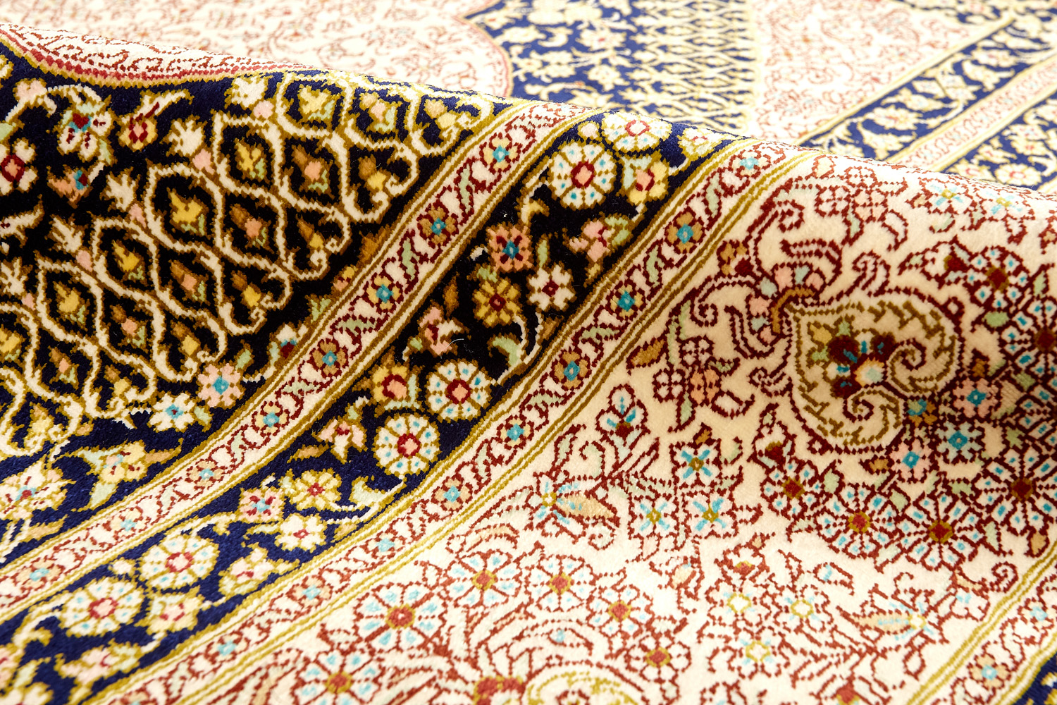 Шёлковая нить гибкая и прочная, поэтому ковры из этого материала считаются самыми износостойкими, а по количеству цветов в одном узоре ковры из коллекции Кум, пожалуй, остаются непревзойдёнными.