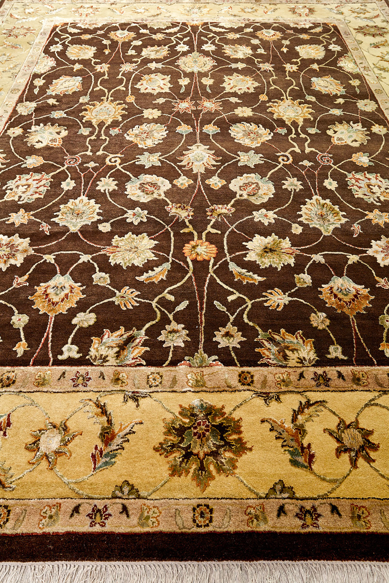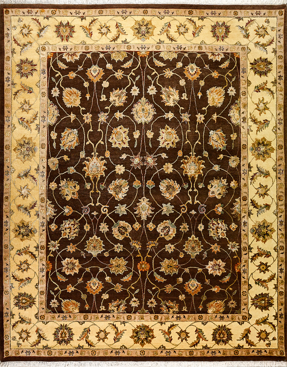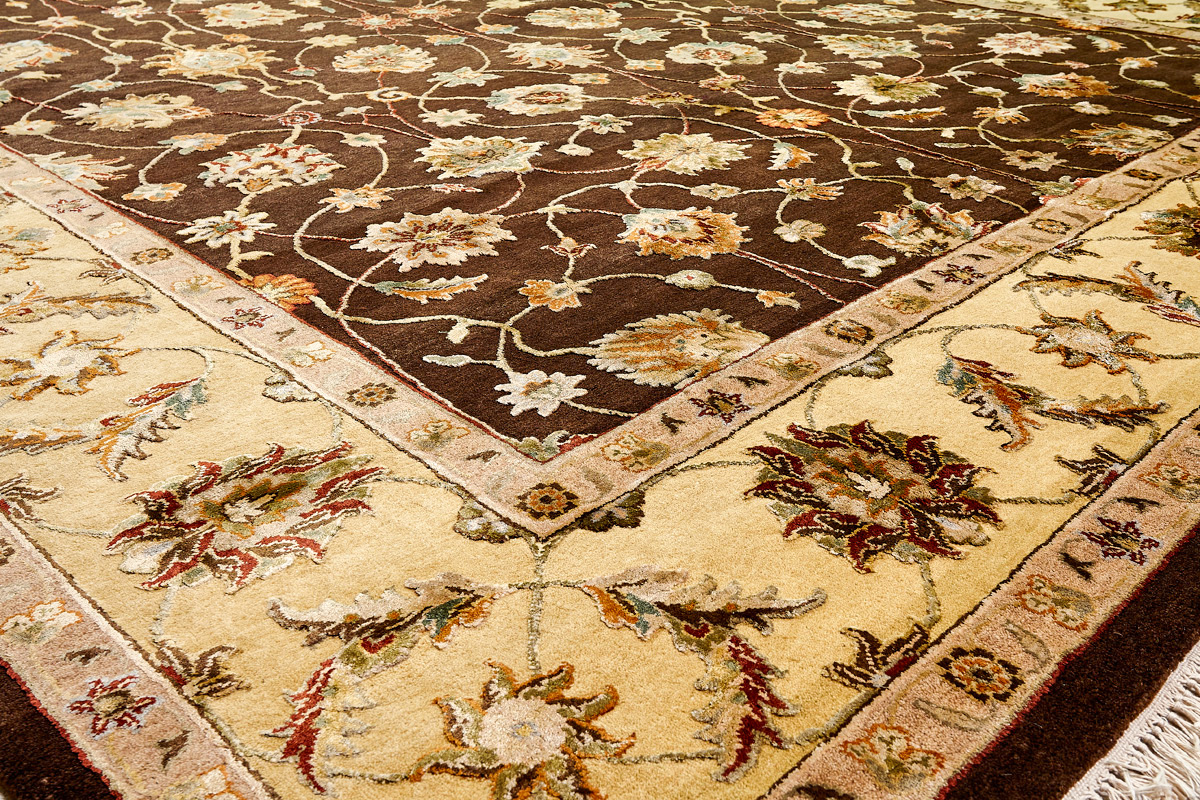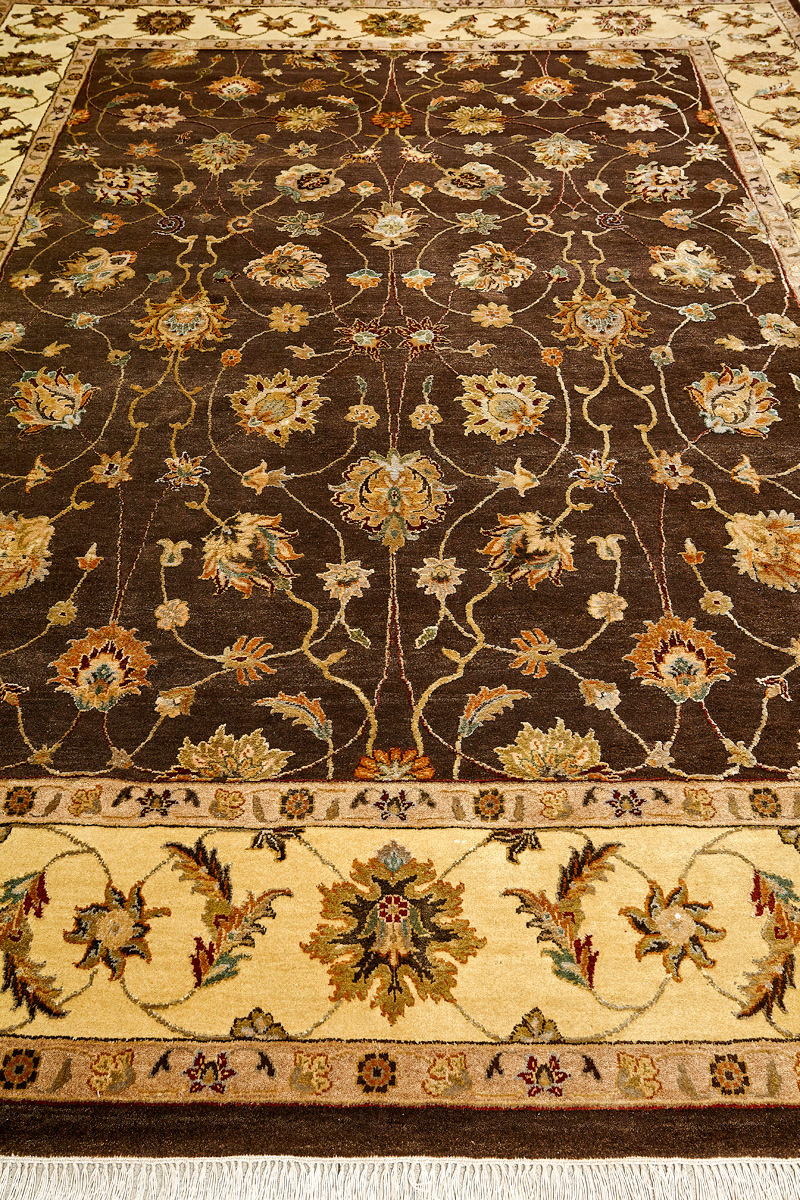 Более пяти веков назад в городе Агра зародилась знаменитая индийская школа ковроткачества, прославившаяся не меньше, чем расположенный здесь же Тадж-Махал. Мощное персидское влияние, помноженное на местный колорит, привело к появлению оригинальных орнаментов с богатыми растительными узорами — причудливым цветам, ветвям и листьям, разбросанным по всему полю ковра.