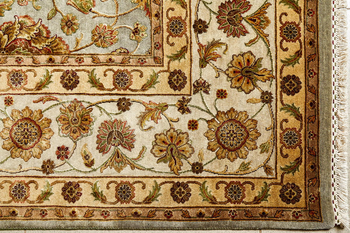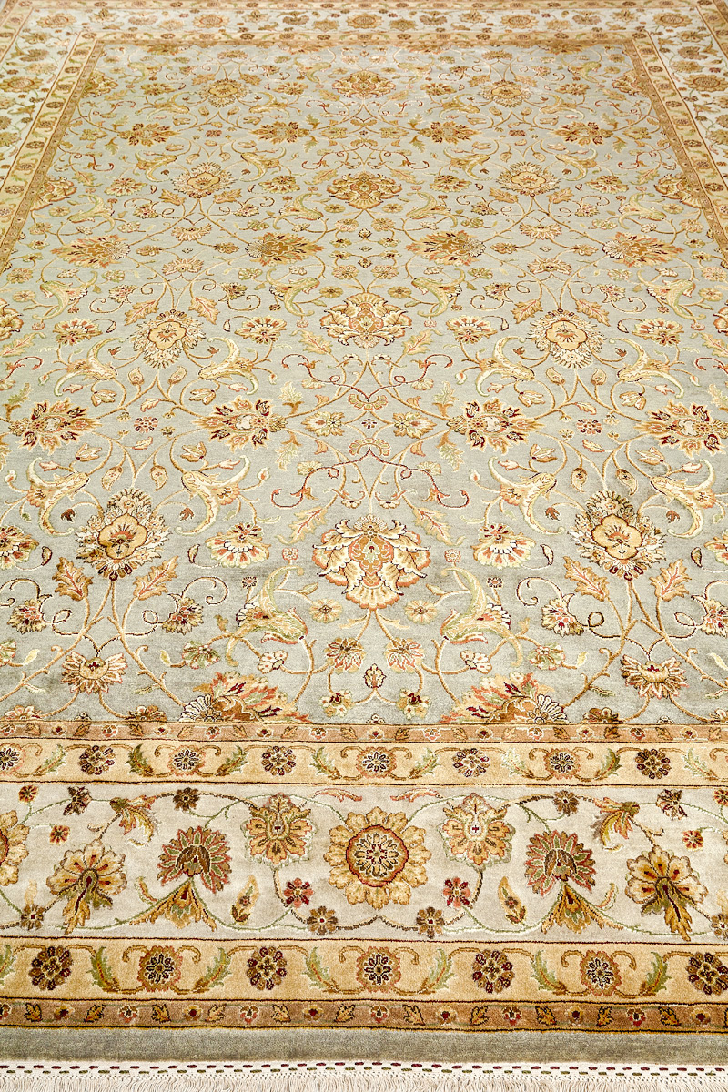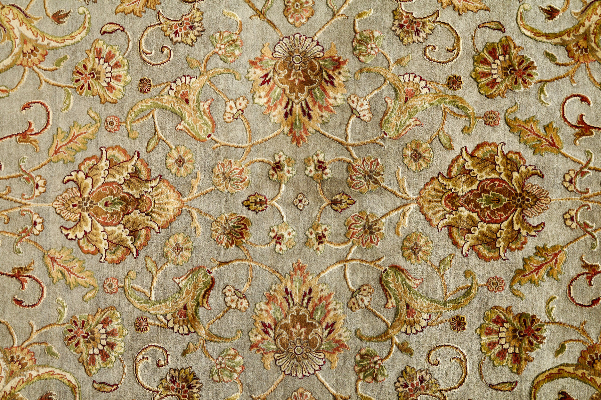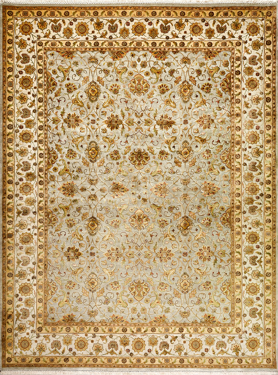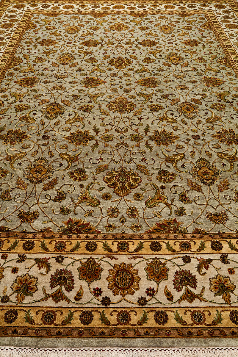 Более пяти веков назад в городе Агра зародилась знаменитая индийская школа ковроткачества, прославившаяся не меньше, чем расположенный здесь же Тадж-Махал. Мощное персидское влияние, помноженное на местный колорит, привело к появлению оригинальных орнаментов с богатыми растительными узорами — причудливым цветам, ветвям и листьям, разбросанным по всему полю ковра.