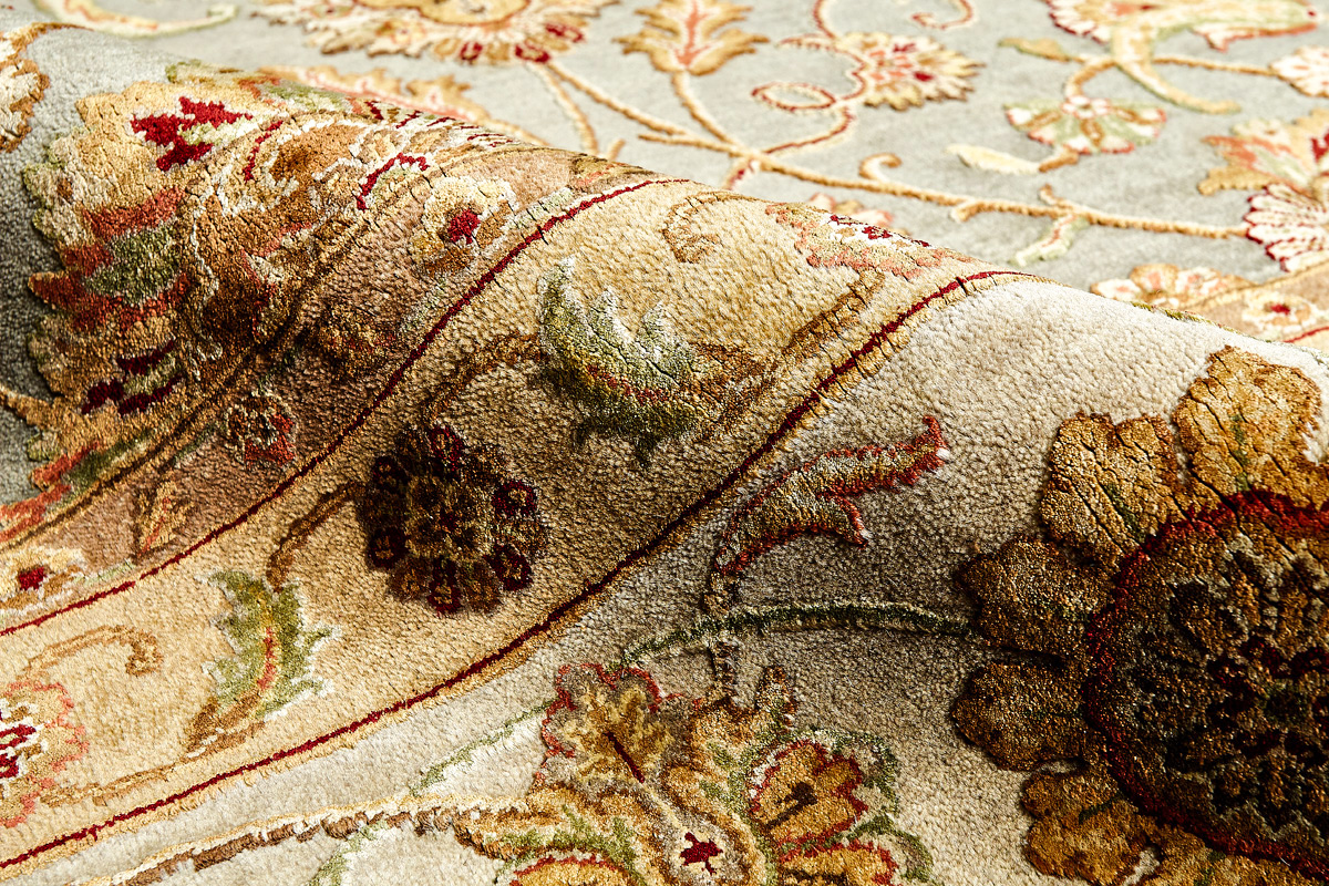 Каждый ковер в этой коллекции соткан вручную из шерсти и арт шёлка опытными индийскими мастерами.